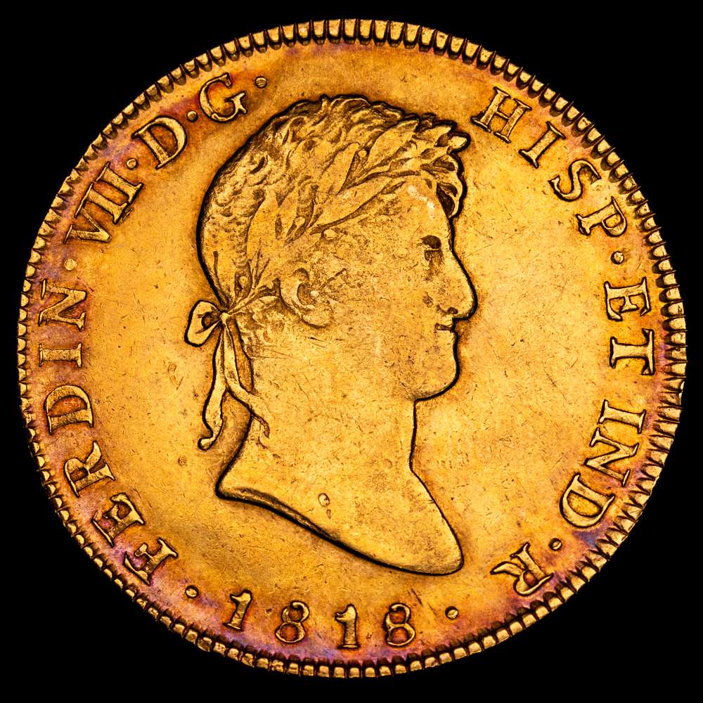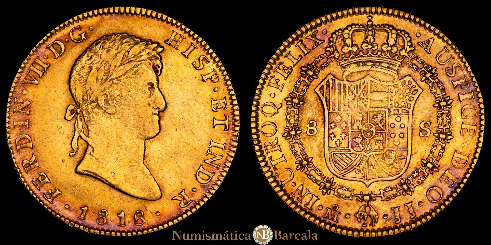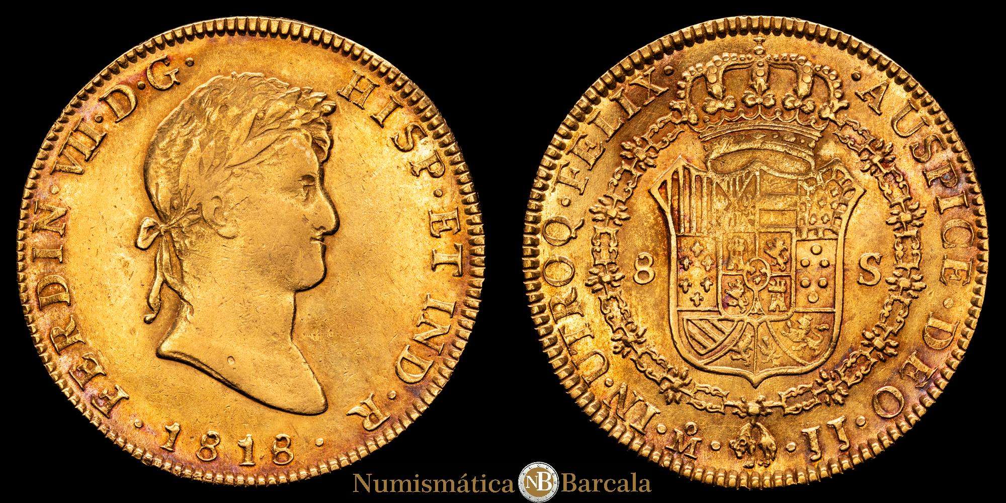 Numismática Barcala > Productos > Fernando VII. 8 Escudos. (27,01 g.). México. 1818. J·J.(AC. 1797) (Cal.Onza 1269). Bonita pátina. MBC+.