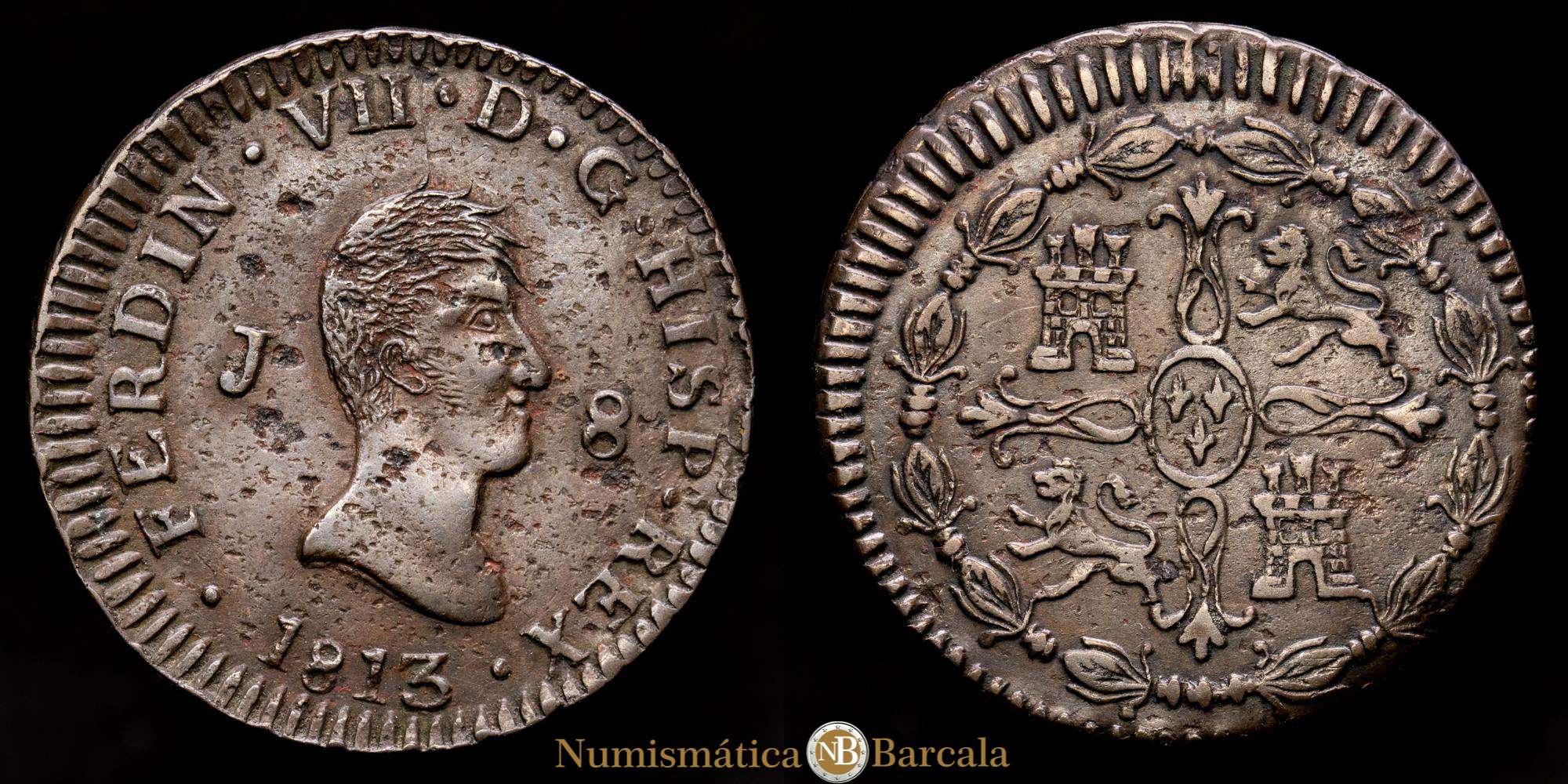 Fernando VII. 8 Maravedí. (10,32 g.). Jubia. 1813. AC-191. Hojitas. MBC+.