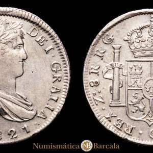 Numismática Barcala > Productos > Fernando VII. 8 Reales. (26,75 g.). Zacatecas. 1821. Ensayador R·G. AC-1465. EBC. Restos de brillo original.