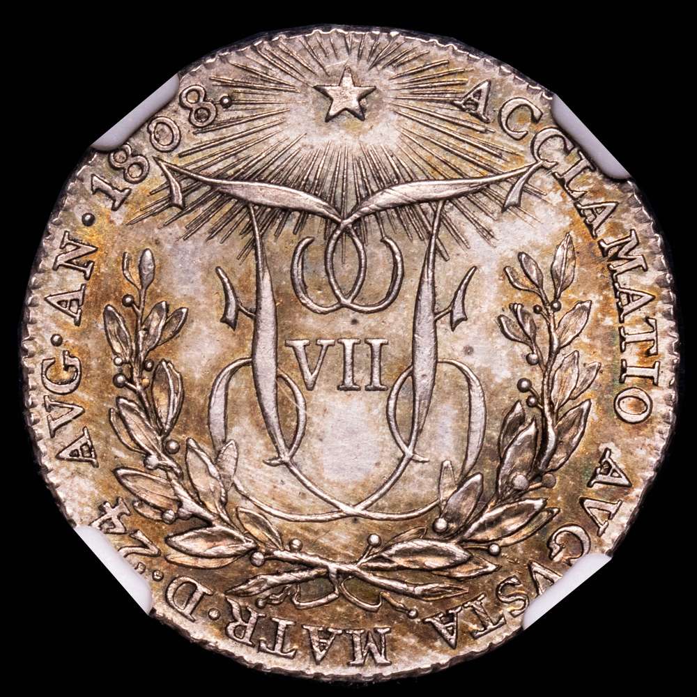 Numismática Barcala > Productos > Fernando VII. Medalla de proclamación. 1808. Madrid. (Herrera-2). (Vives-200).Ag. 5,99 gramos. Módulo de 2 Reales. Pátina de monetario. Magnífico ejemplar. Encapsulada por NGC como MS 63.