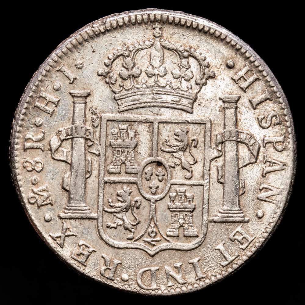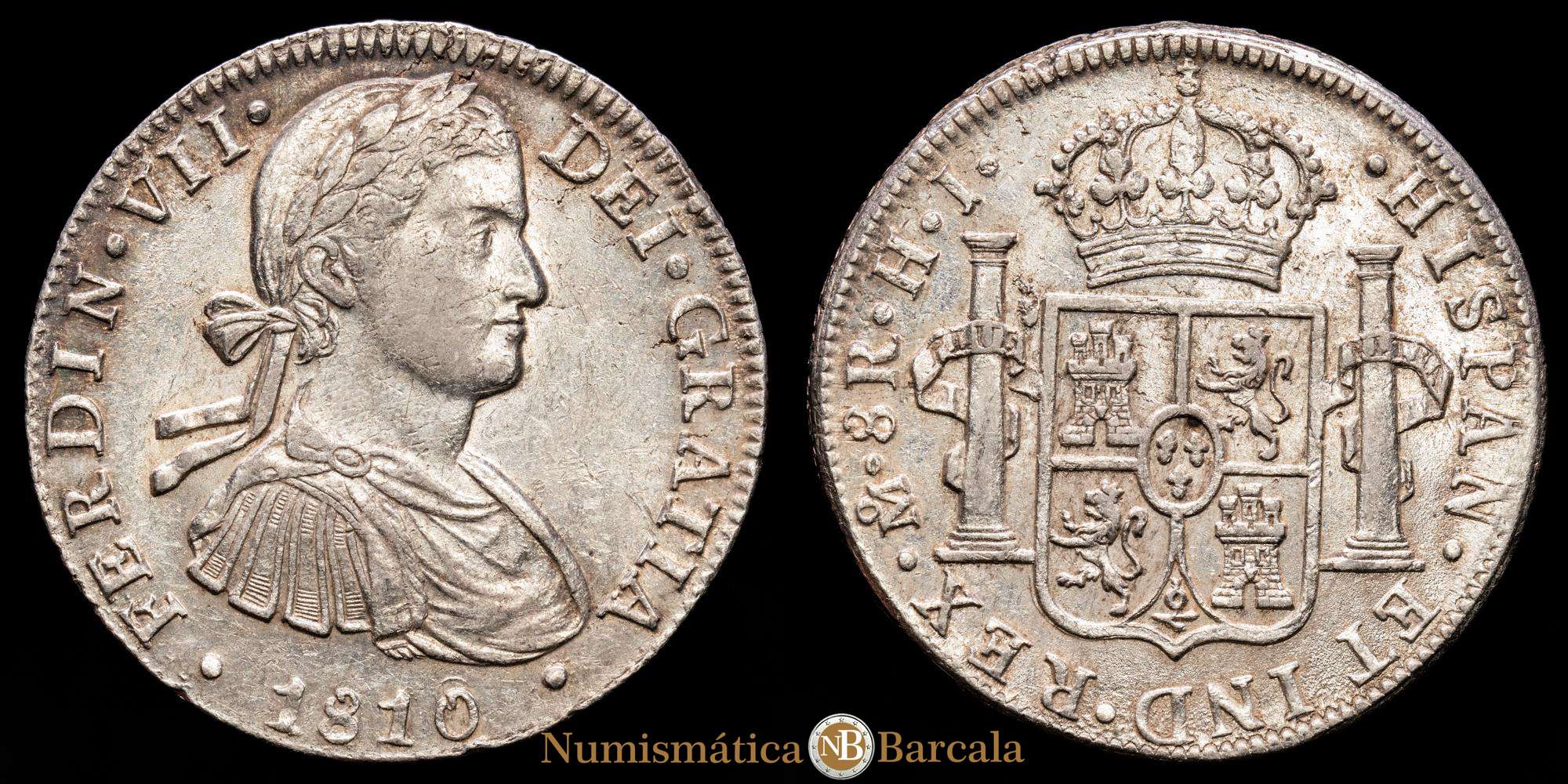 Numismática Barcala > Productos > Fernando VII. México. 1810/9. HJ. 8 reales. (AC. 1311). Busto imaginario. (27,01 gramos). Parte de brillo original. EBC-.