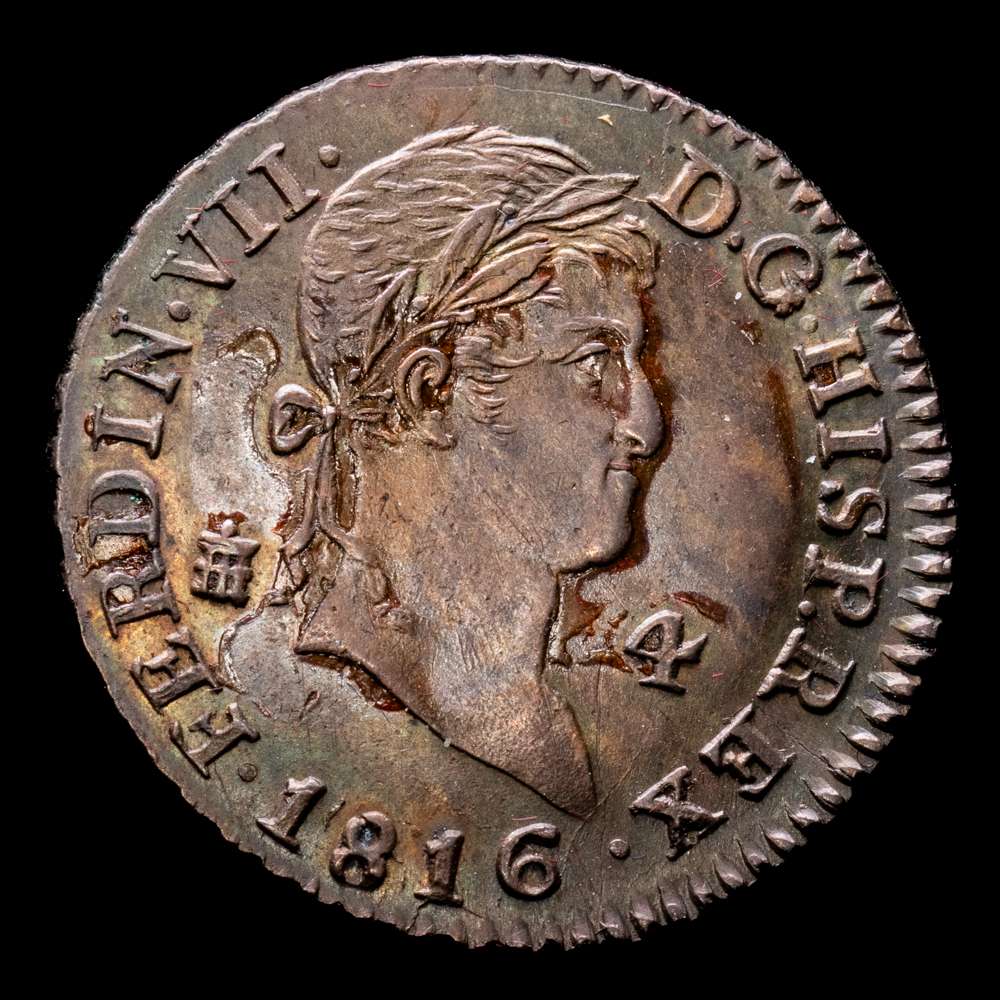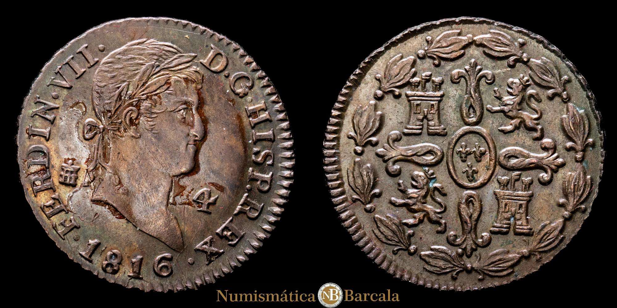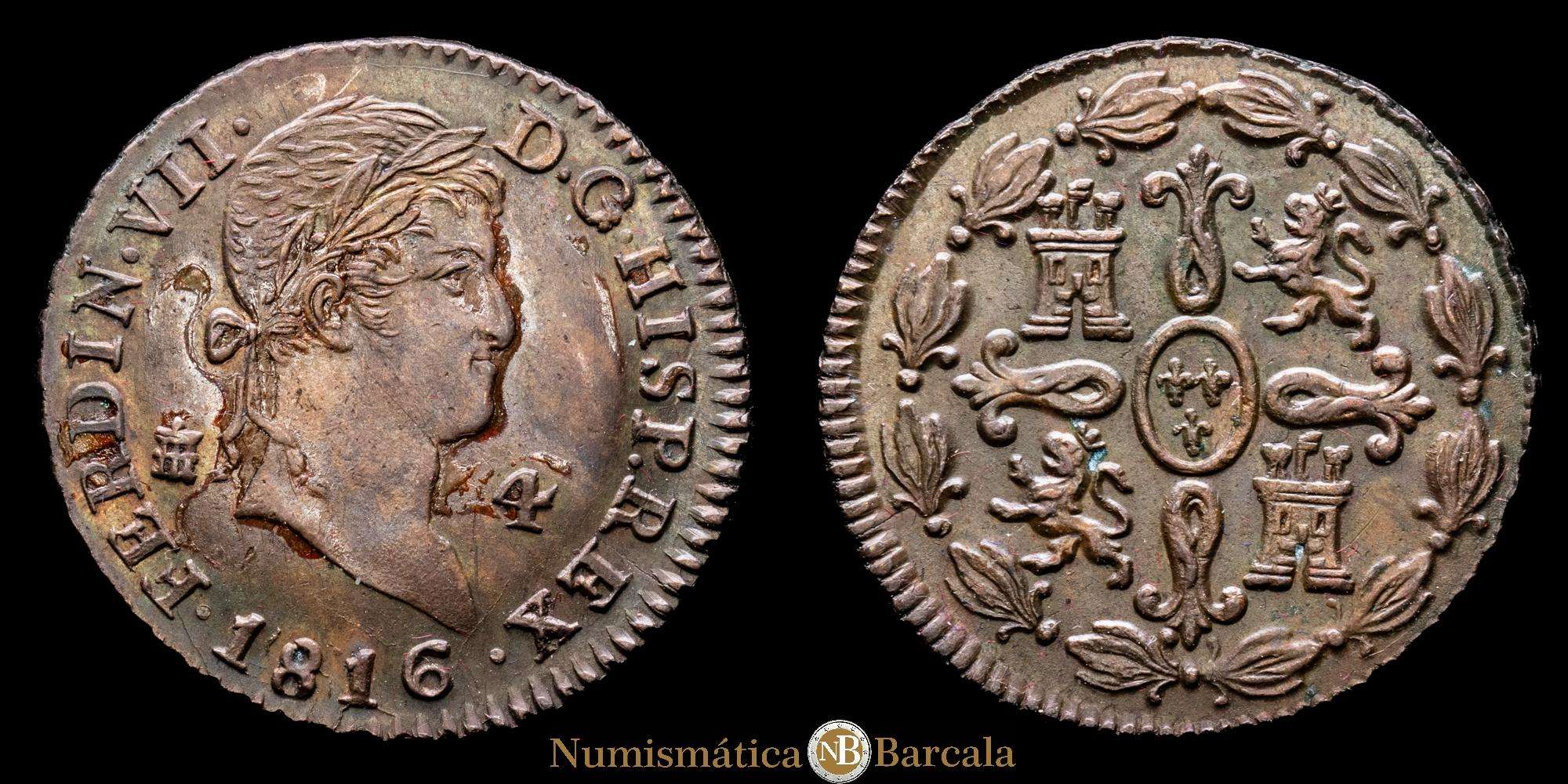 Fernando VII. Segovia. 4 maravedís. 1816. (Cal-171). Ae. 5,72 gramos. Resto de barniz. SC-.
