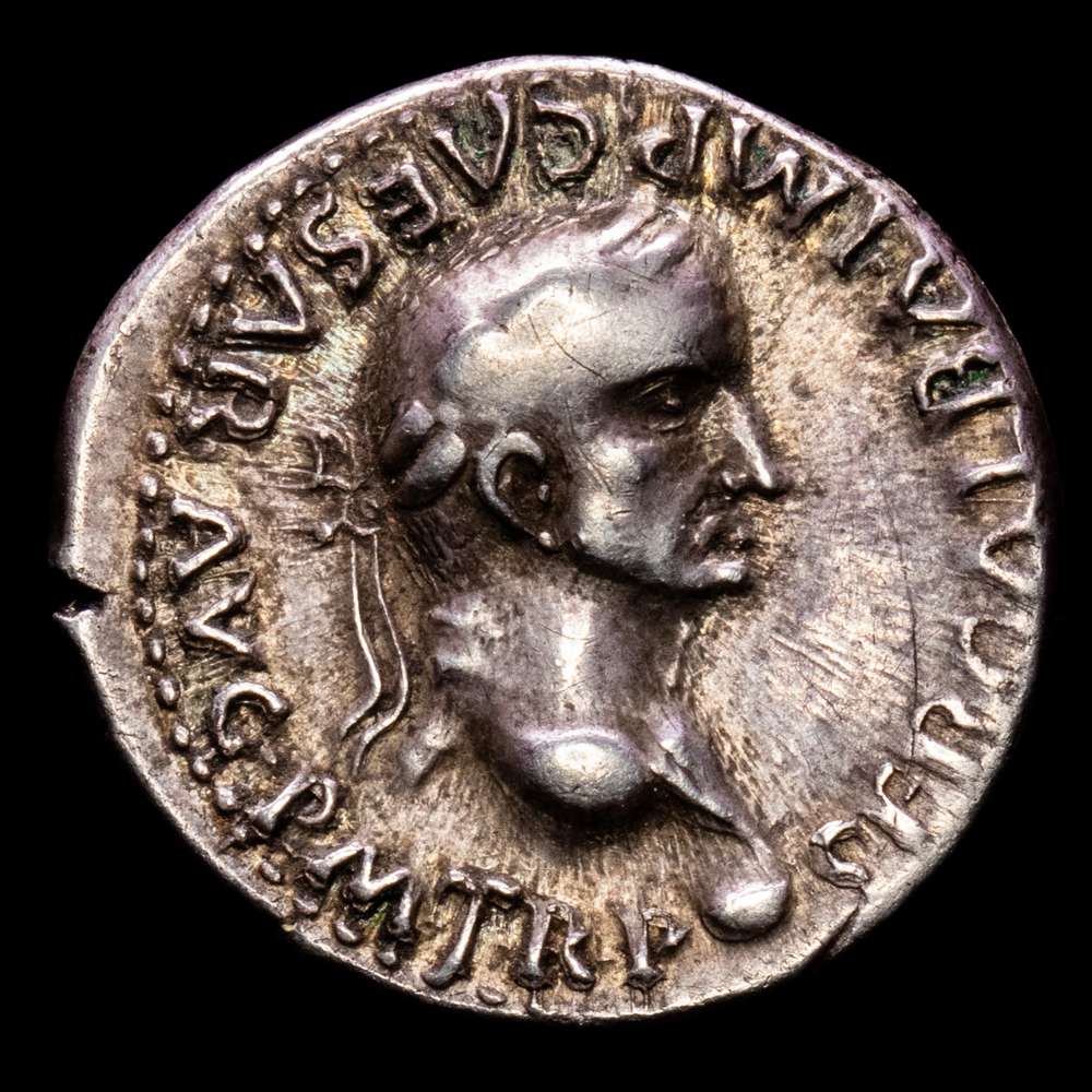 Galba. Denario. 68 d. C. Tarraco. (Ric-57). (Acip-4188). (Bmc-181). Anv.: SER GALBA IMP CAESAR AVG PM TR P. Cabeza laureada a la derecha, con un globo terráqueo en la punta del busto. Rev.: RENASC ROMA. Roma, con casco y vestimenta de militar, avanzando hacia la derecha sosteniendo la Victoria sobre un globo terráqueo y una lanza transversal. Ag. 3,38 gramos. Precioso tono. Muy rara, aún más en esta conservación. Excepcional para el tipo.