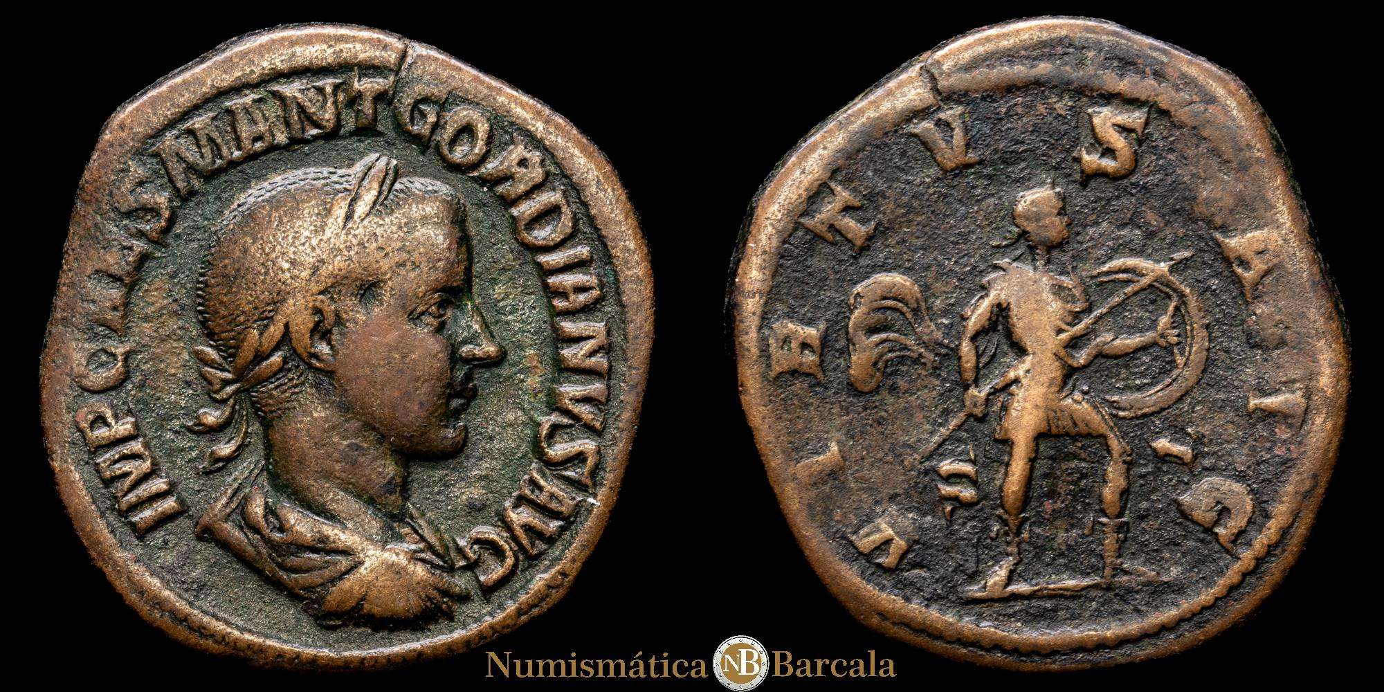 Numismática Barcala > Productos > GORDIAN III (238-244). Sestercio. Roma. RIC 259a. 22,05 gramos,: 32 mm. MBC.