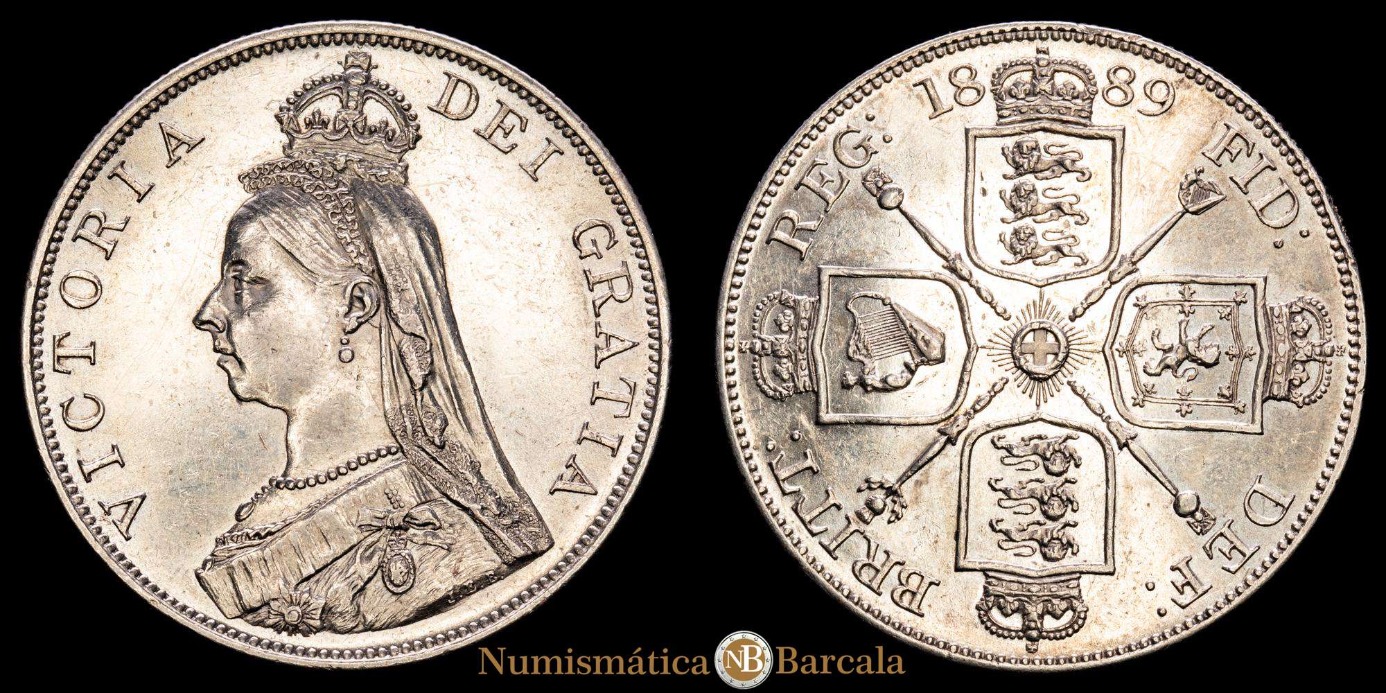Numismática Barcala > Productos > Gran Bretaña. Victoria. 2 florines. 1889. (Km-763). Ag. 22,63 gramos. Brillo original. UNC-.