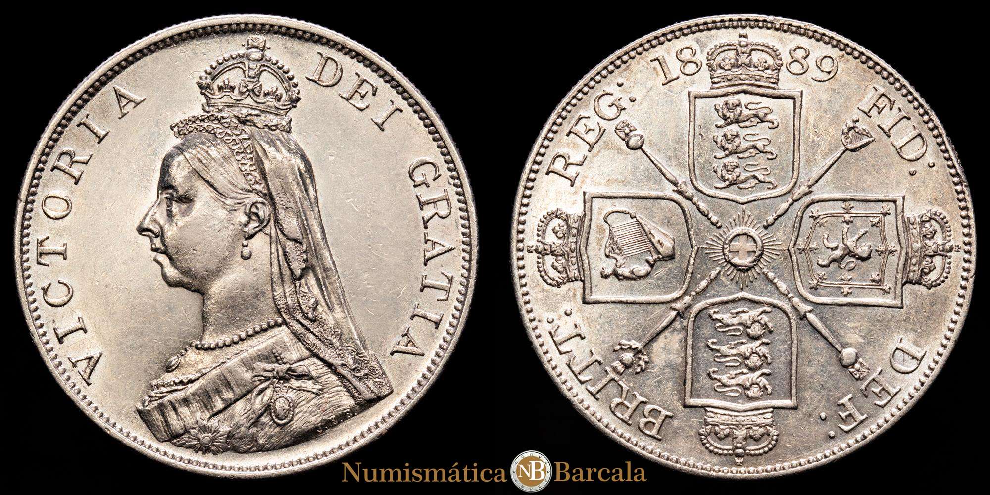 Gran Bretaña. Victoria. 2 florines. 1889. (Km-763). Ag. 22,63 gramos. Brillo original. UNC-.