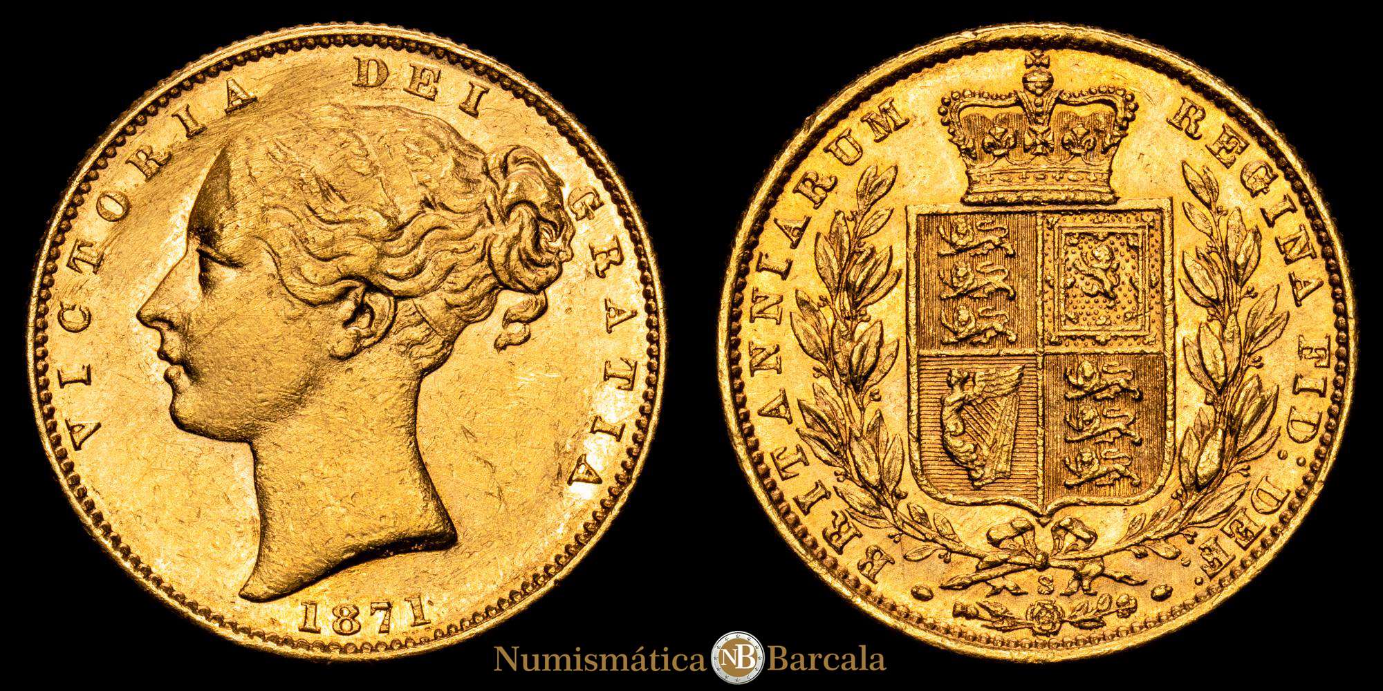 Gran Bretaña – Victoria. Soverano. (8,00 g.). Sydney. 1871. (S-3855A). (KM-6). XF. Finas rayitas en anverso.