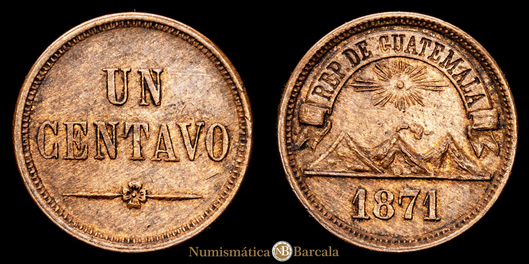 Guatemala. 1 Centavo. (4,94 g.). Guatemala. 1871. KM-196. XF.