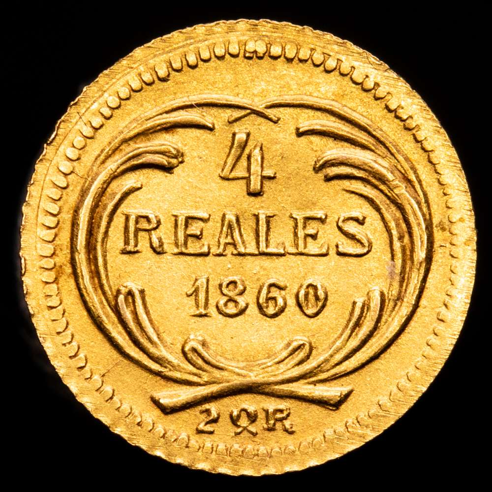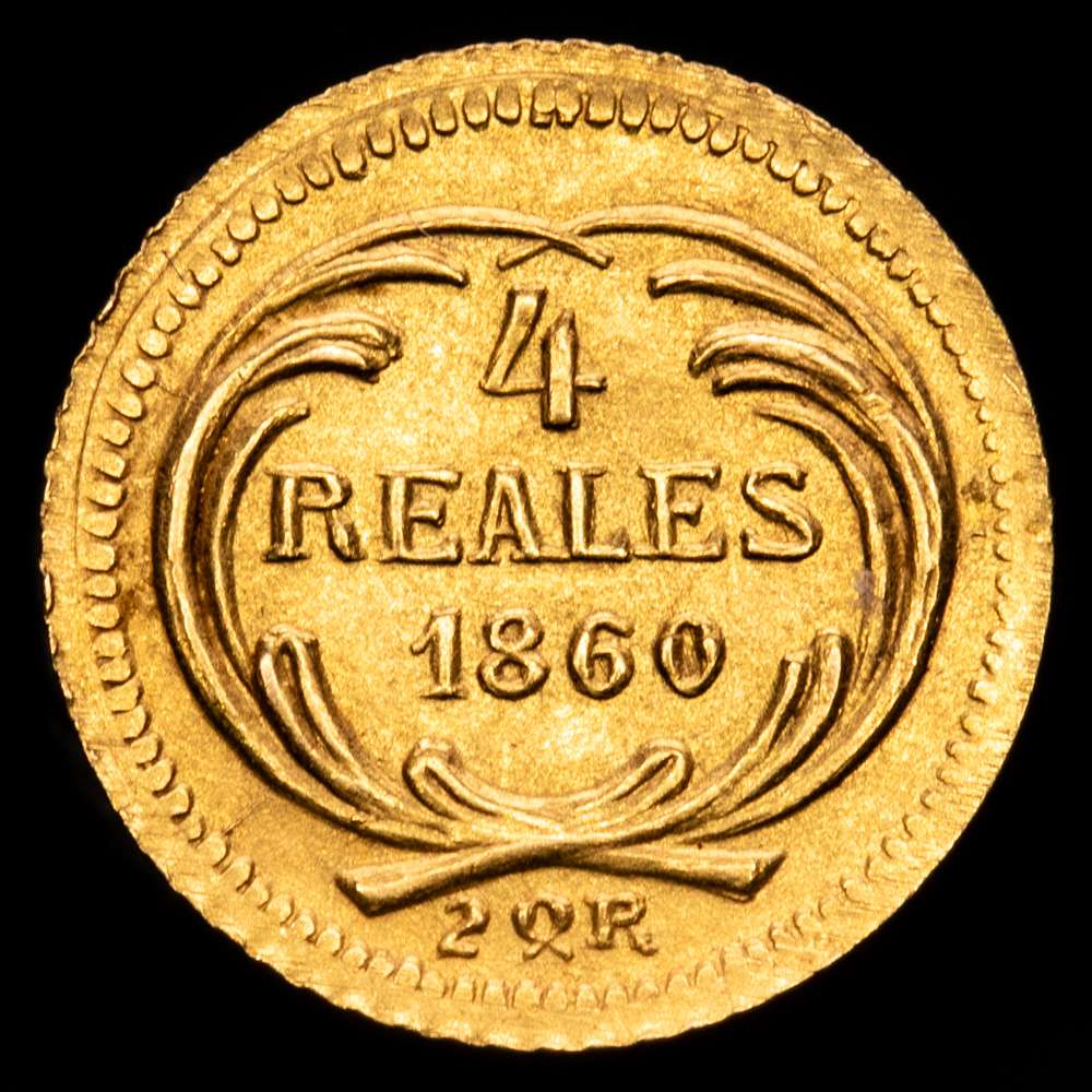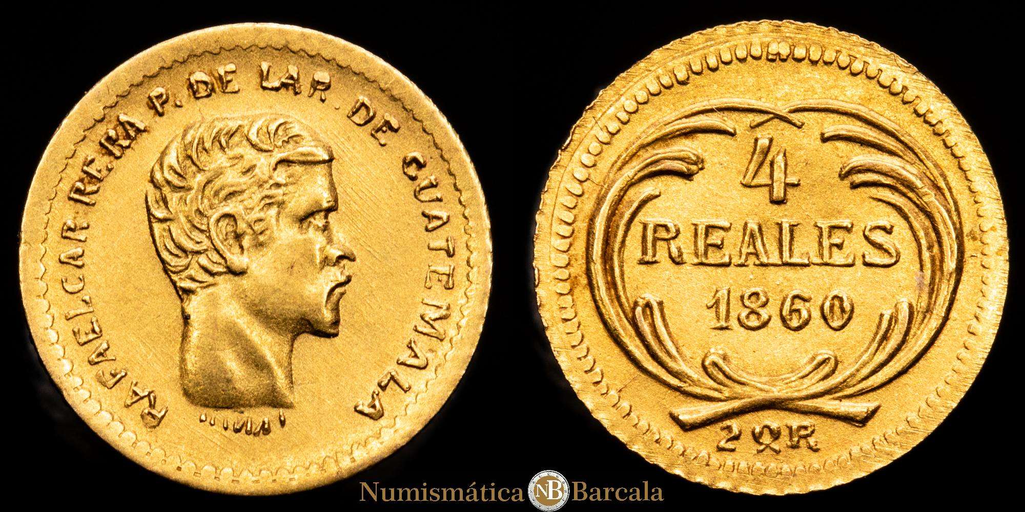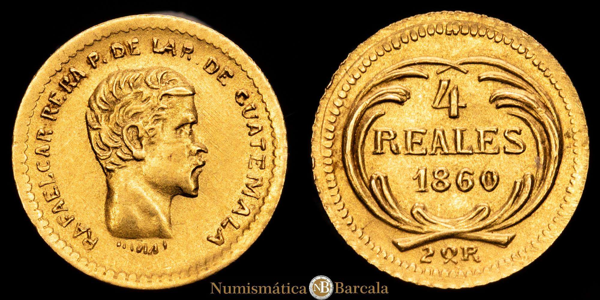 GUATEMALA. 4 Reales de Oro, 1860-R. Casa de la Moneda de la Ciudad de Guatemala. Rafael Carrera. (0,79 g.). KM-135.