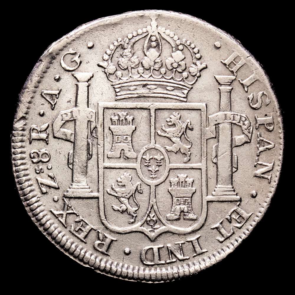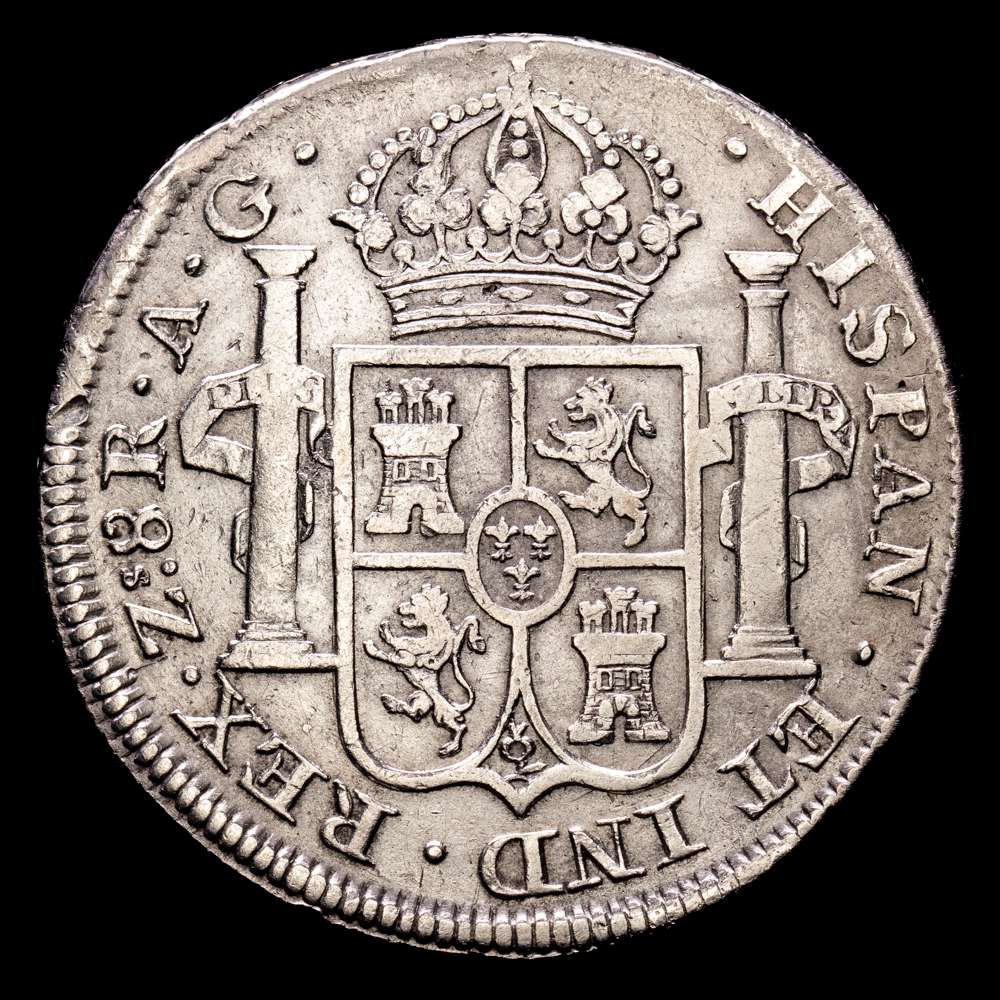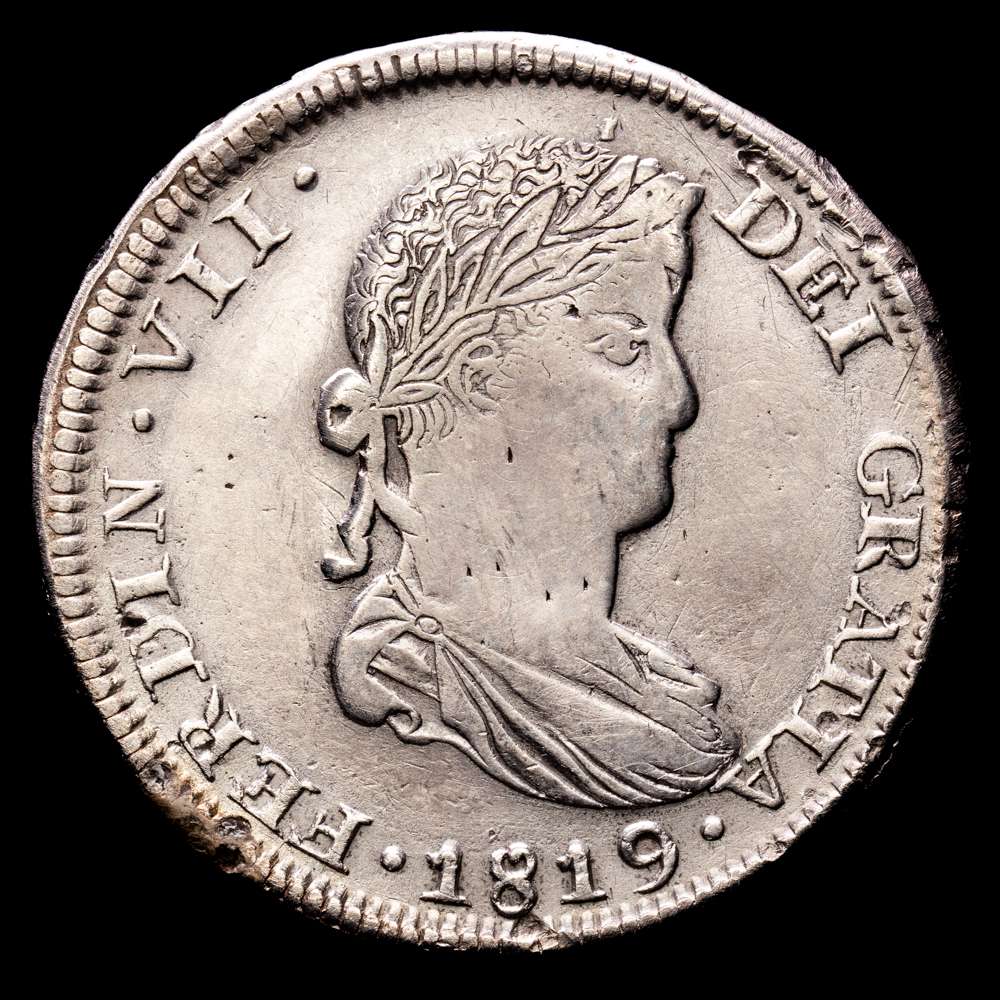 Fernando VII (1808-1833). 8 reales. 1819. Zacatecas. AG. (Cal-1460.1). Ag. 26,54 g. Variedad sin punto entre DEI GRATIA. Escasa. VF+.