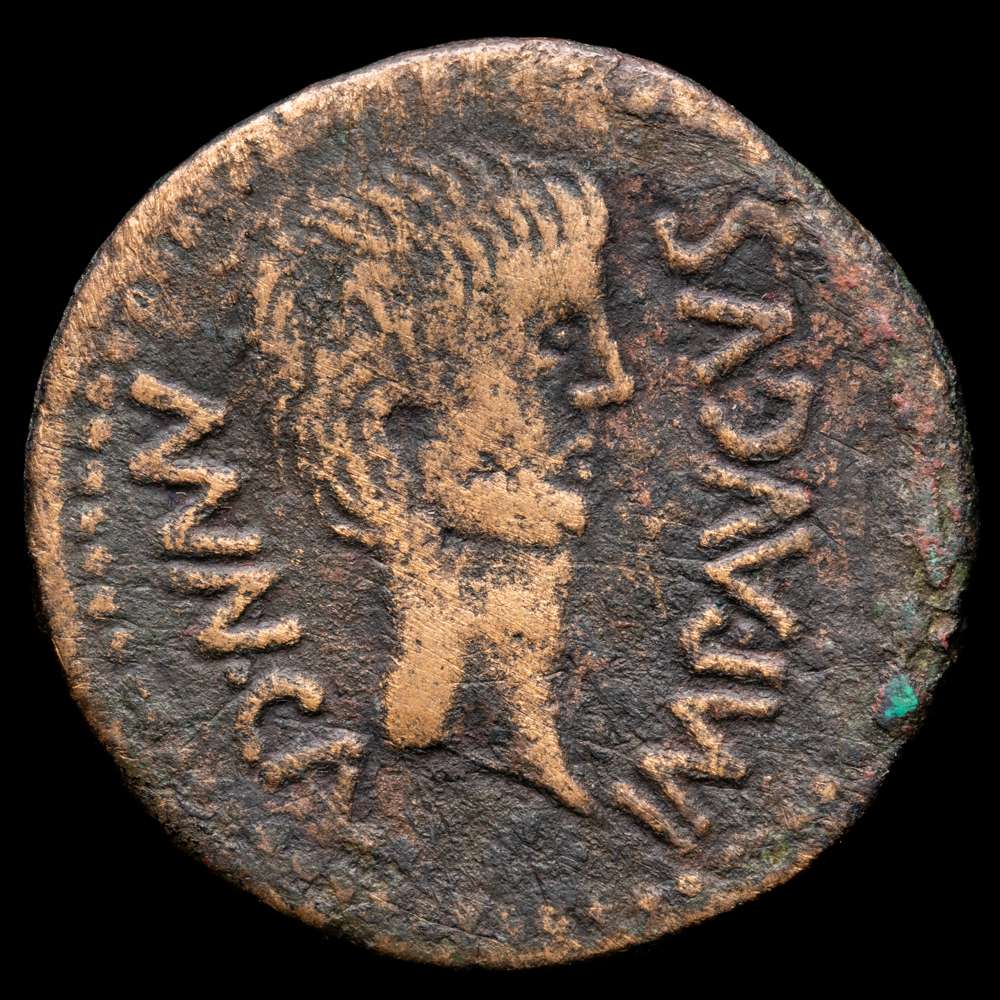 Hispania -CALAGURRIS. Como. Cabeza de Augusto a derecha y MVN.CAL. As. (12,18 g.). Calagurris. Vv158,3. MBC-. Oxidaciones limpiadas con ligera pérdida de masa en parte del reverso. Pátina marrón.