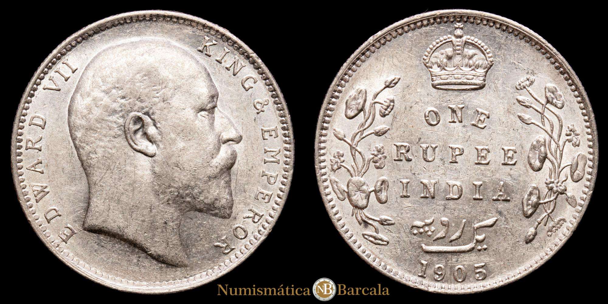 India Británica – Edward VII. Rupee. (11,64 g.). Bombay. 1905. KM-508. UNC-. Brillo original