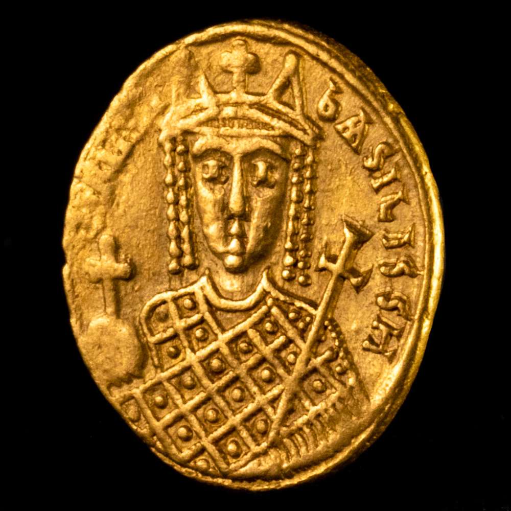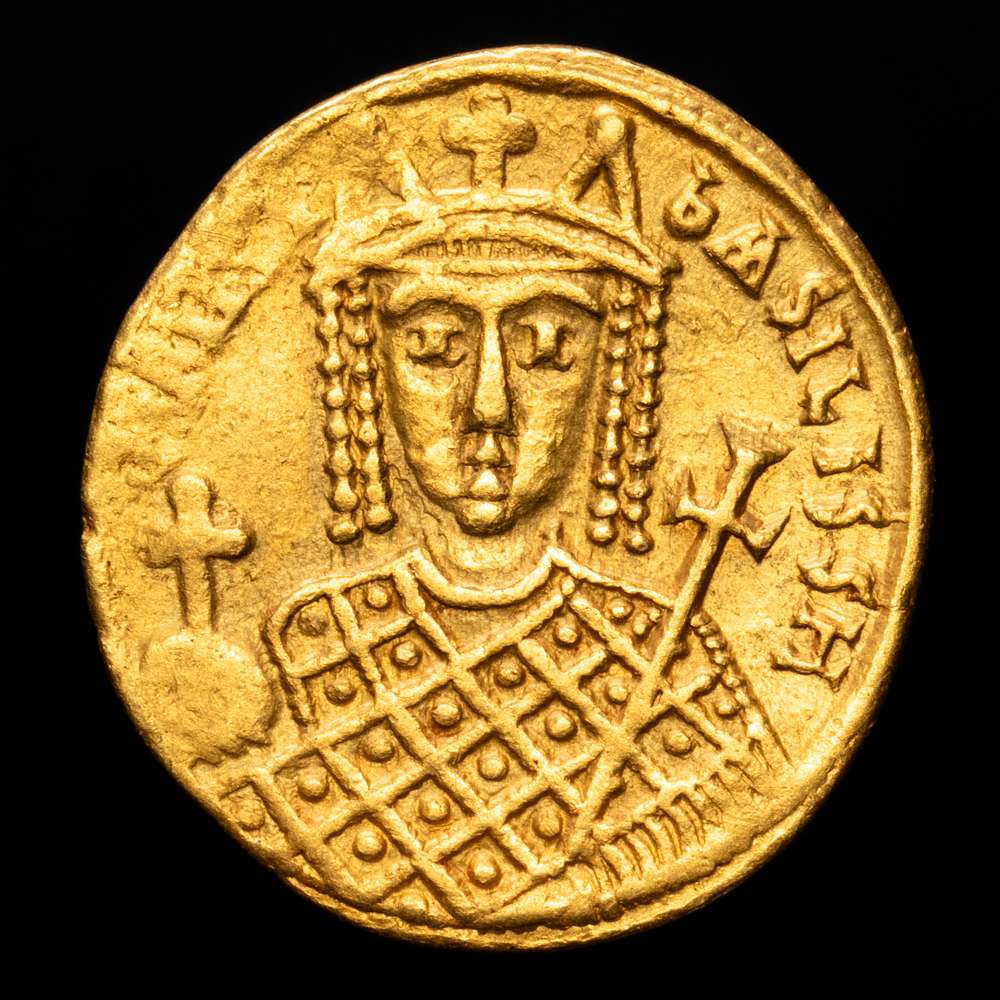 Numismática Barcala > Productos > Irene. 797-802. AV Solidus (4,45 g,). Casa de la moneda de Constantinopla. Acuñada en 797-802. DOC 1a.2; Füeg ​​2.B.1; SB 1599 MBC+. Muy rara