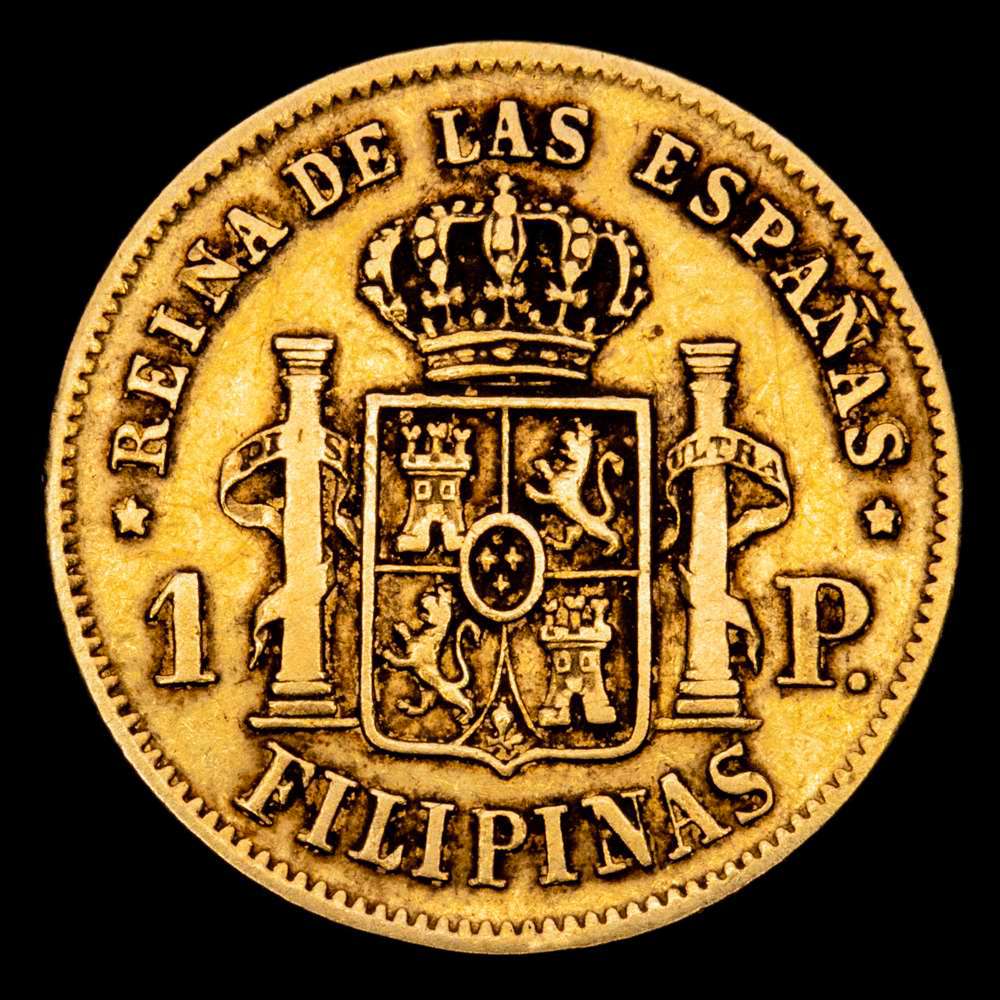 Isabel II (1833-1868). 1 Peso 1861. Manila. (Cal-820). Au. 1,65 gramos. VF+. Escasa.