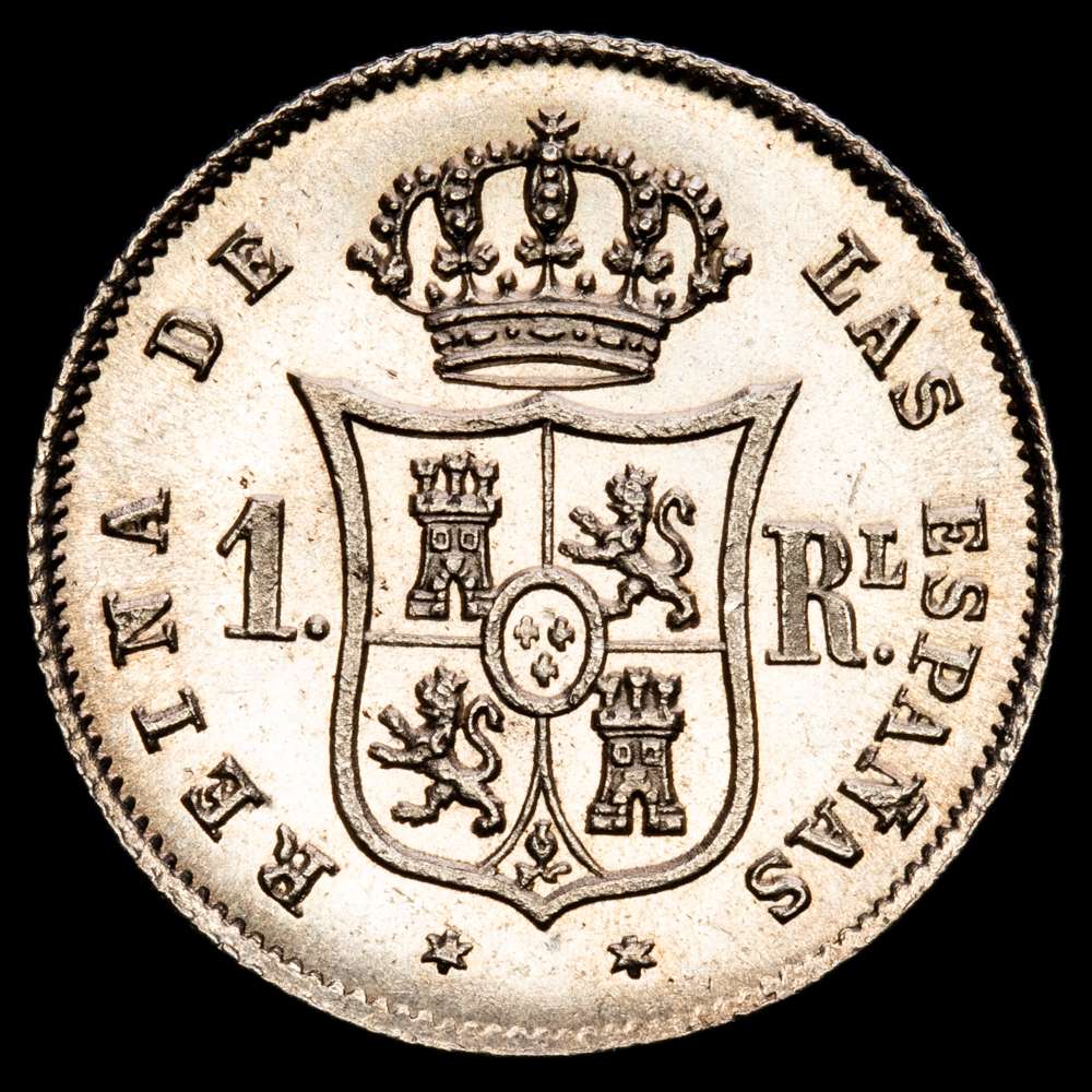 Isabel II. 1 Real. (1,29g.). Madrid. 1860/55. AC-No cita. SC. Brillo original. Atractivo ejemplar.