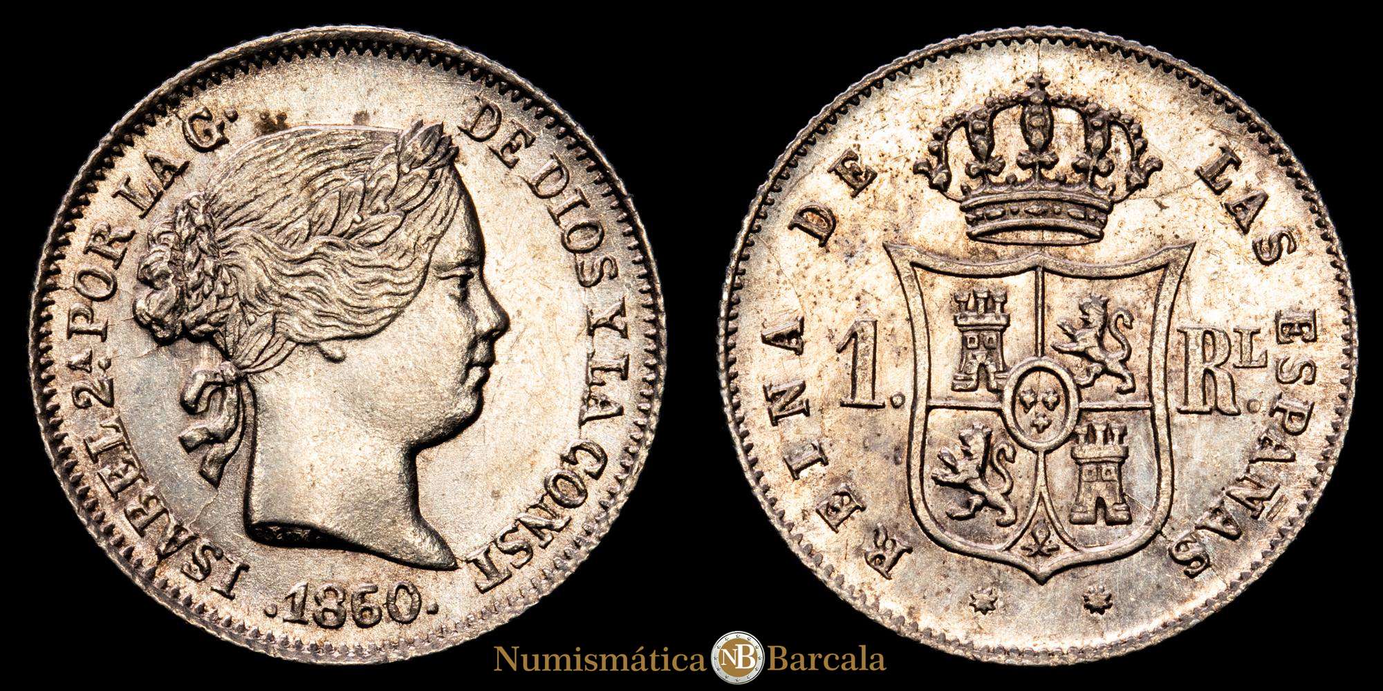 Isabel II (1833-1868). 1 real. 1860. Barcelona. (Cal-286). Plata: 1,28 gramos. EBC.