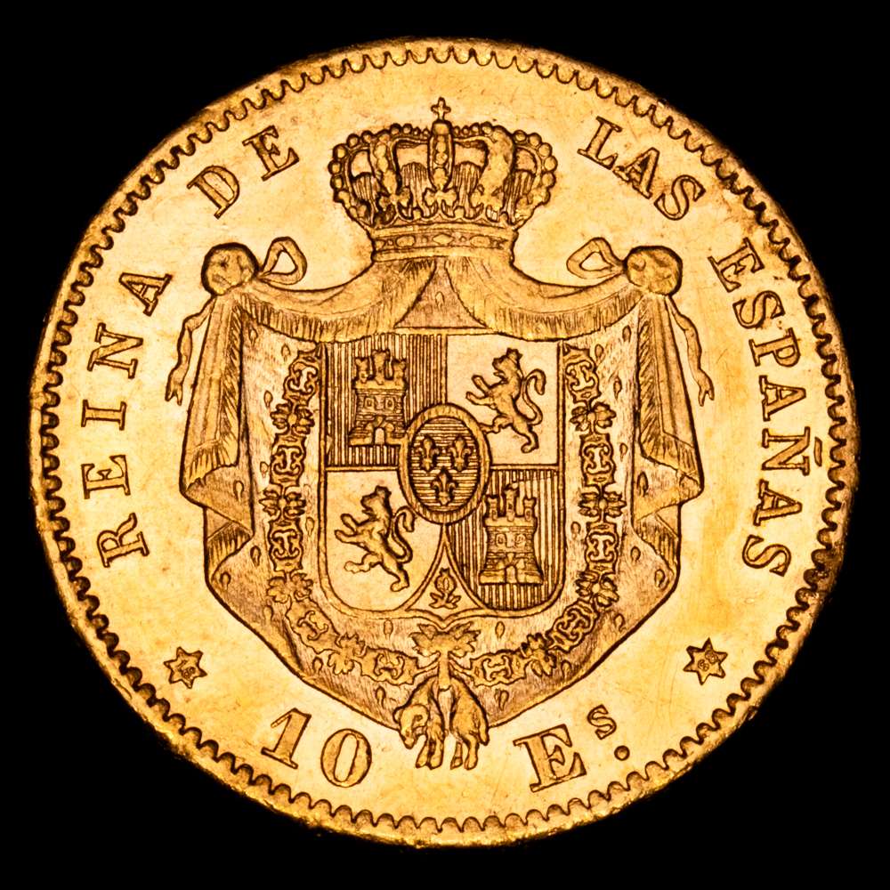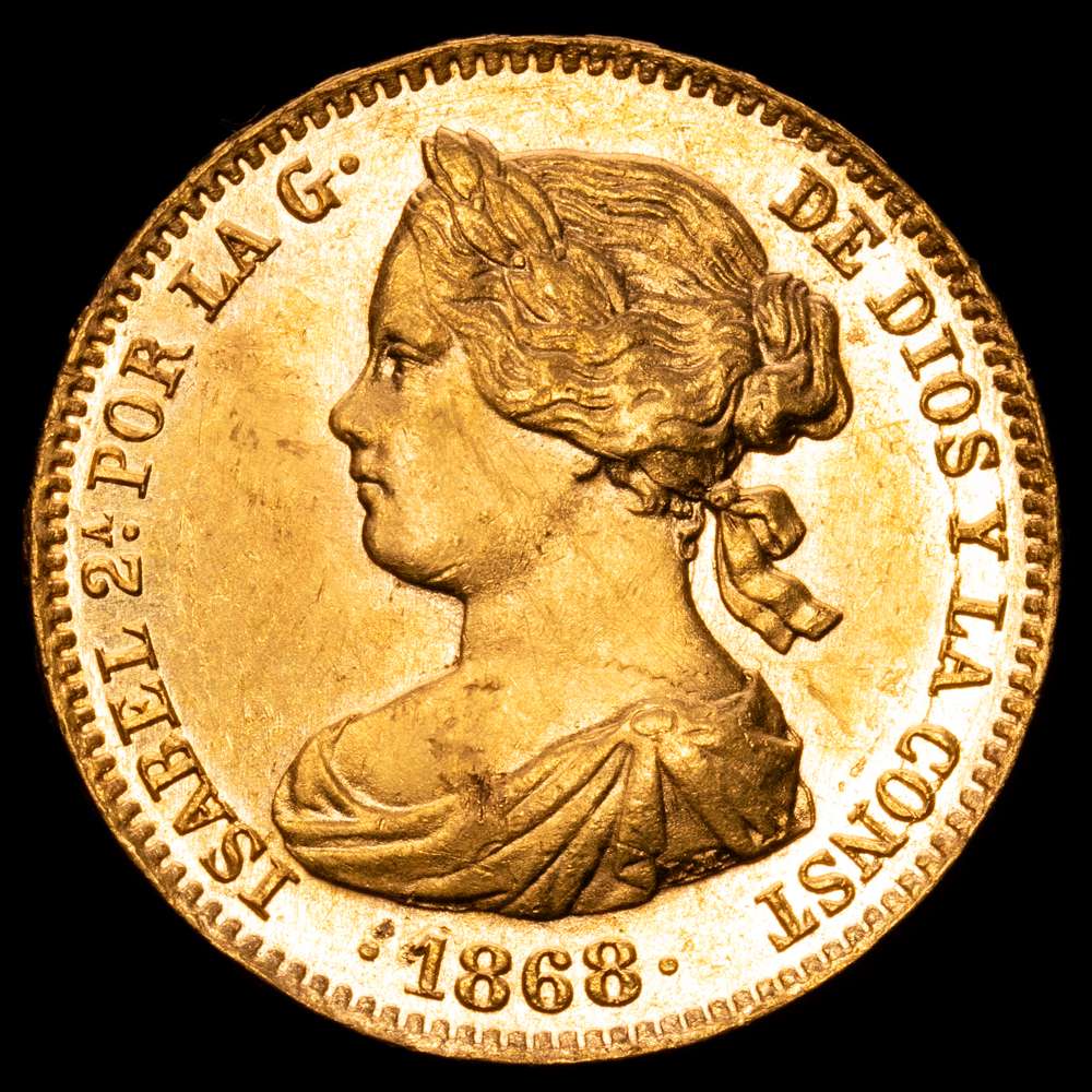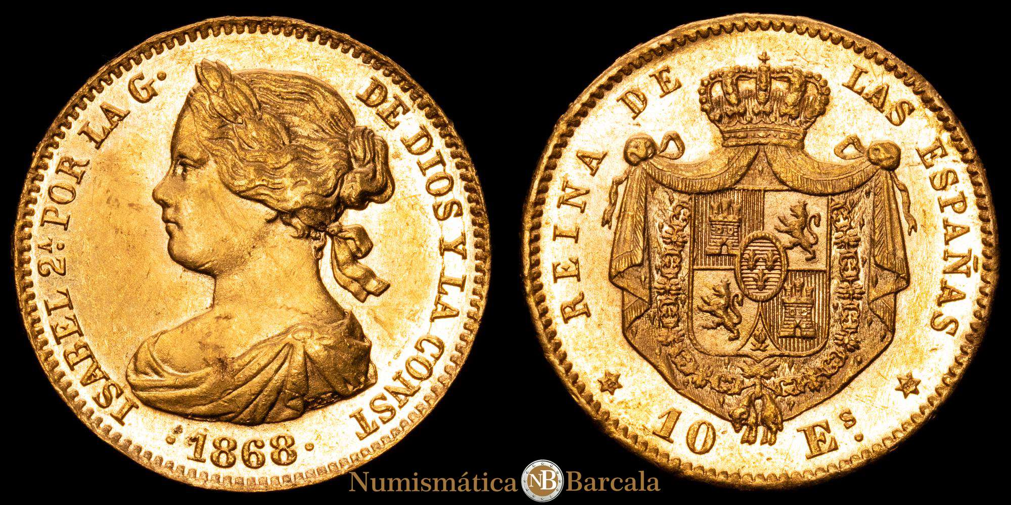 Numismática Barcala > Productos > Isabel II (1833-1868). 10 escudos. 1868*18-68. Madrid. (Cal-815). Au. 8,33 g. Bonito color. Brillo original. SC-.