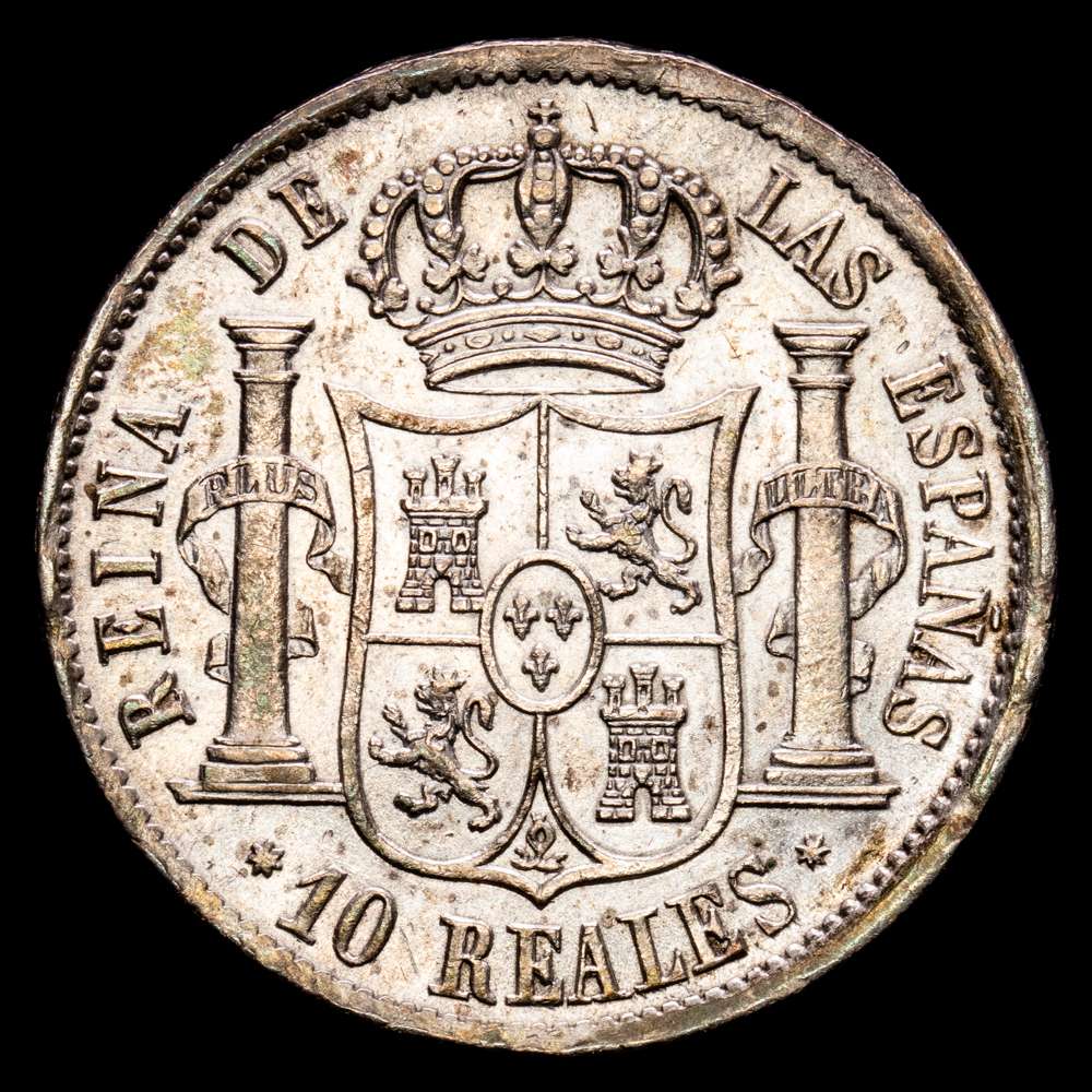 Numismática Barcala > Productos > Isabel II (1833-1868). 10 reales. 1855. Sevilla. (Cal-552). Ae. 12,91 g. Pátina irregular. EBC. Escasa.