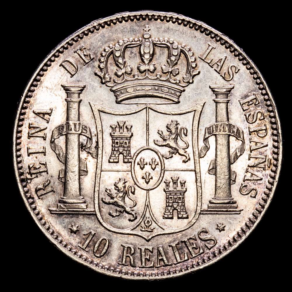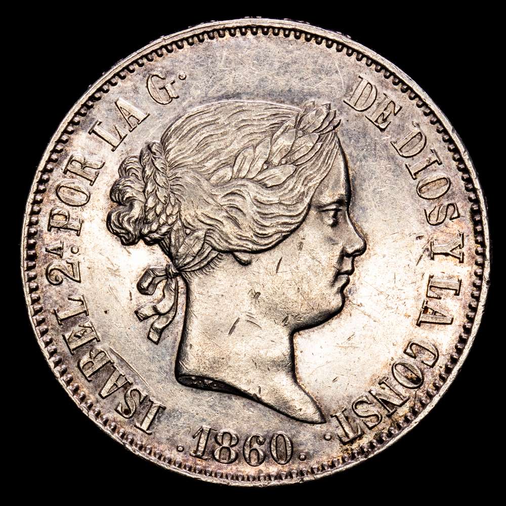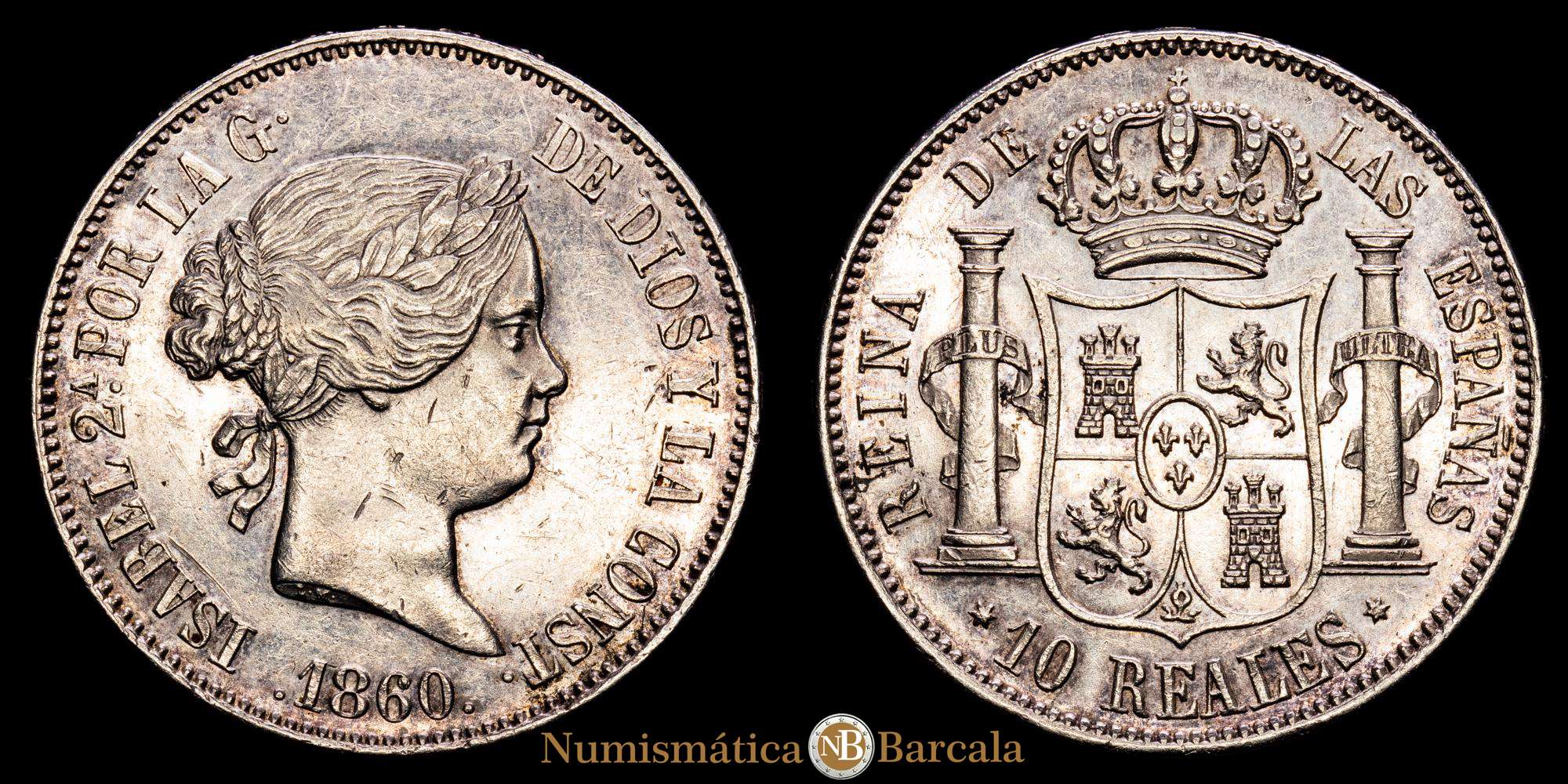 Numismática Barcala > Productos > Isabel II (1833-1868). 10 reales. 1860. Madrid. (Cal-537). Ag. 12,91 gramos. Pequeñas marcas. Parte del brillo original. Escasa así. EBC/EBC+.
