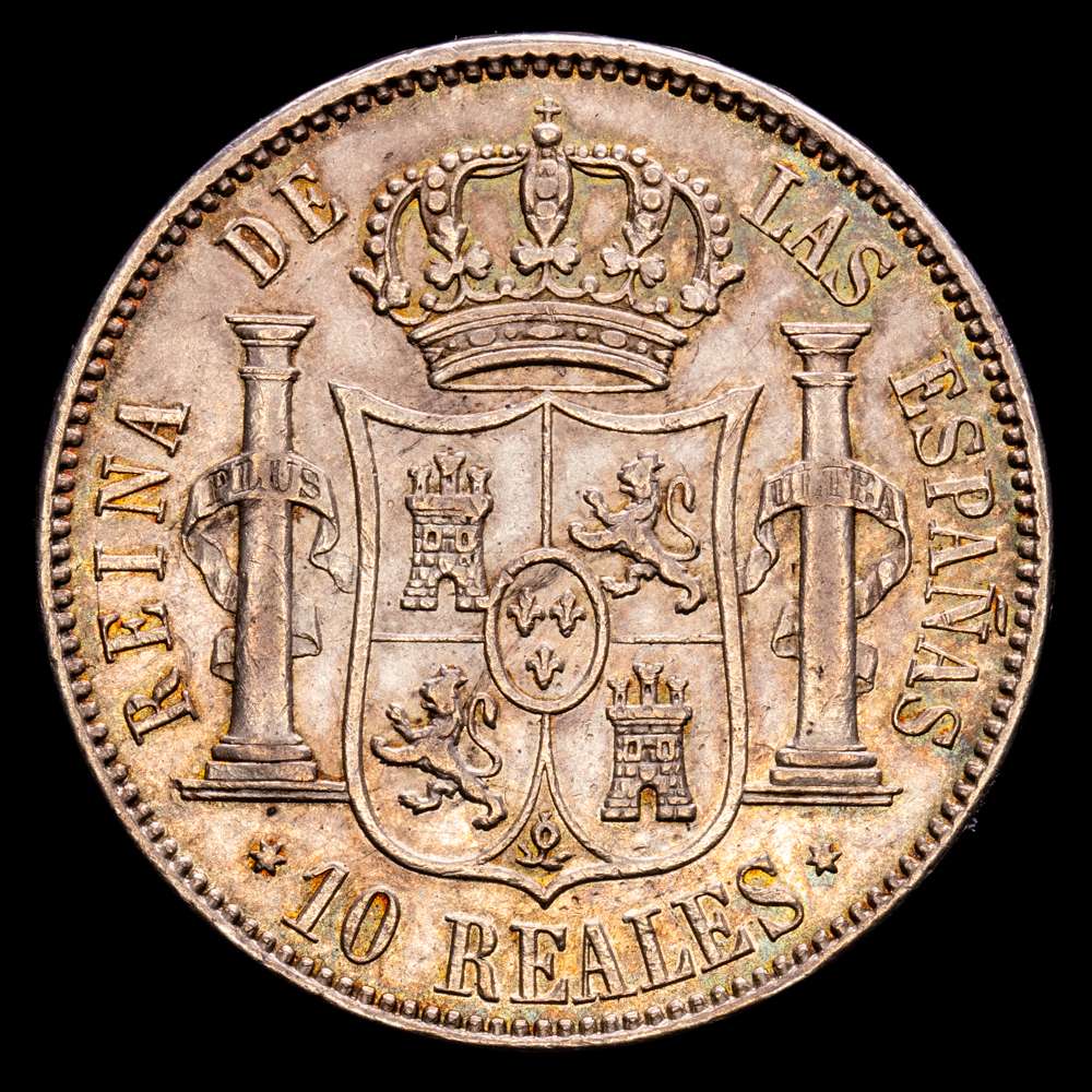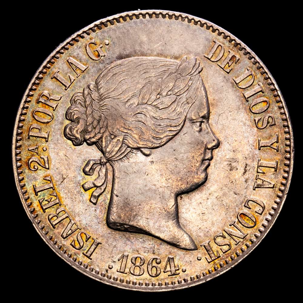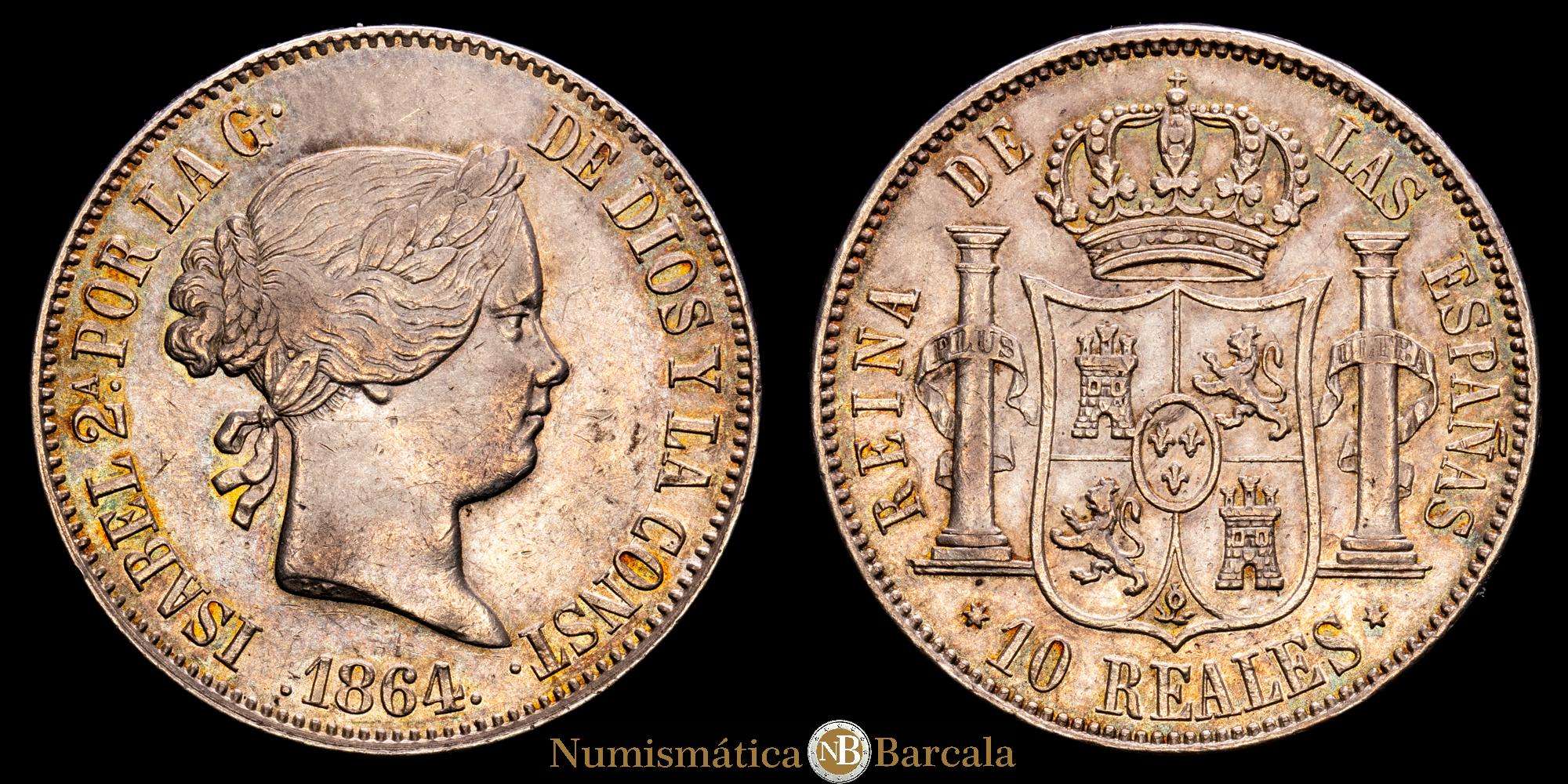 Numismática Barcala > Productos > Isabel II (1833-1868). 10 reales. 1864. Madrid. (Cal-509). Ag. 13,04 gr. Bella pátina. EBC-.