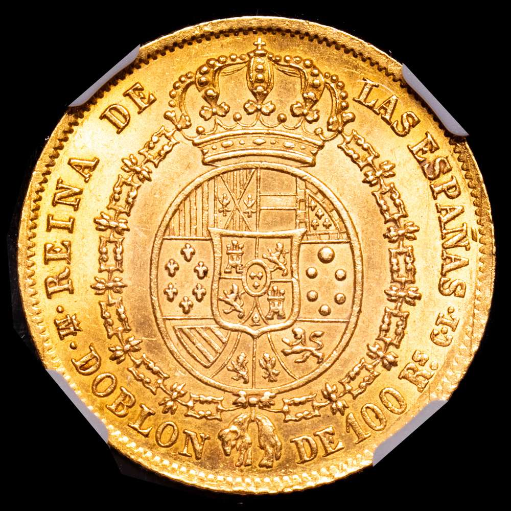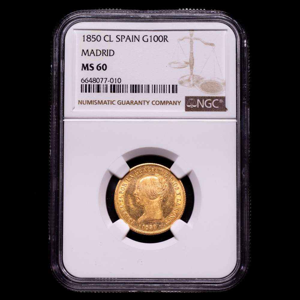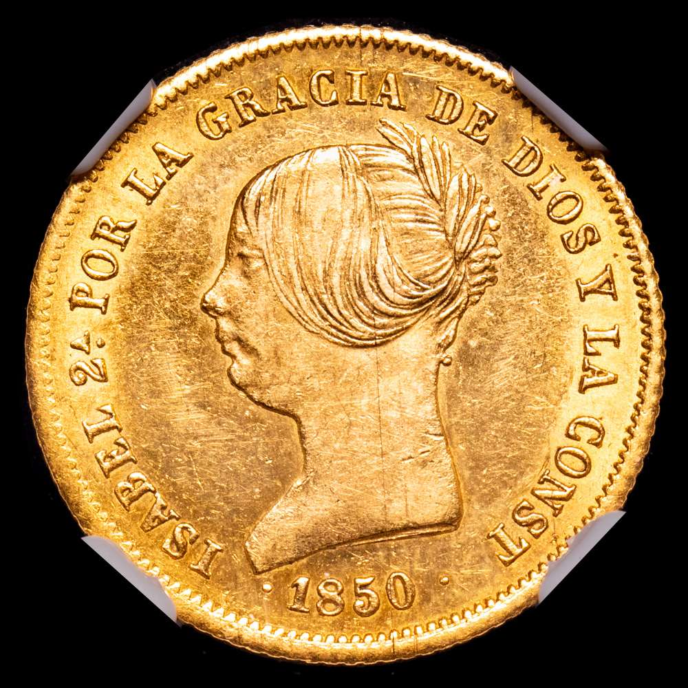 Isabel II (1833-1868). 100 reales. 1850. Madrid. CL. (Cal-757). Au. 8,33 gramos. Brillo original.