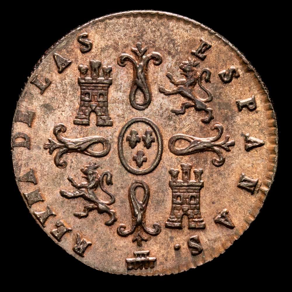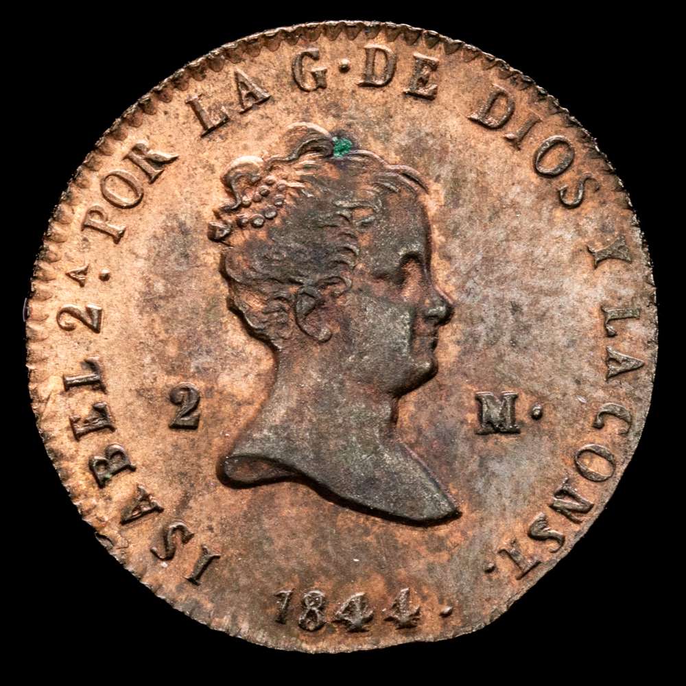 Numismática Barcala > Productos > Isabel II (1833-1868). 2 maravedís. 1844. Segovia. (Cal-56). Ae. 2,31 g. EBC+.