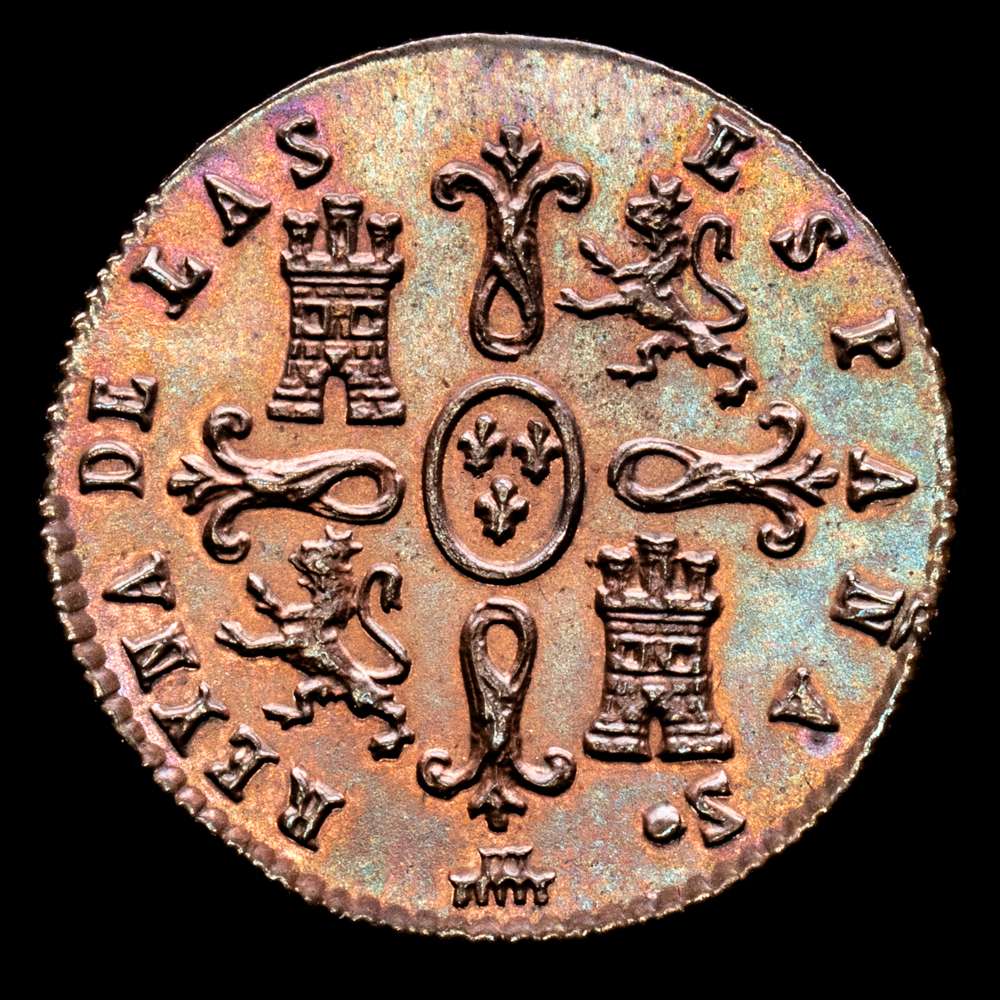 Isabel II. 2 Maravedís. (2,33g.). Barcelona. 1858. AC-37. SC. Muy rara en esta presentación!