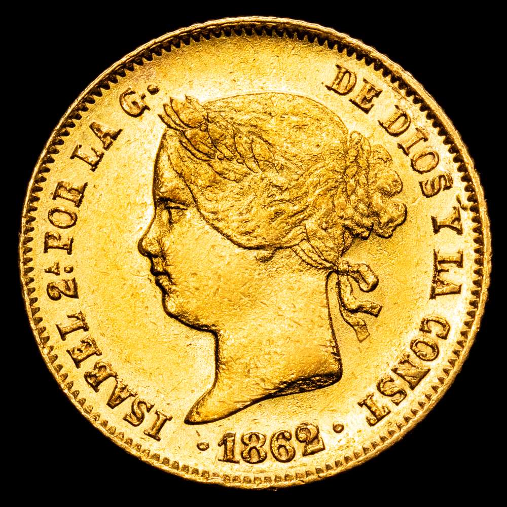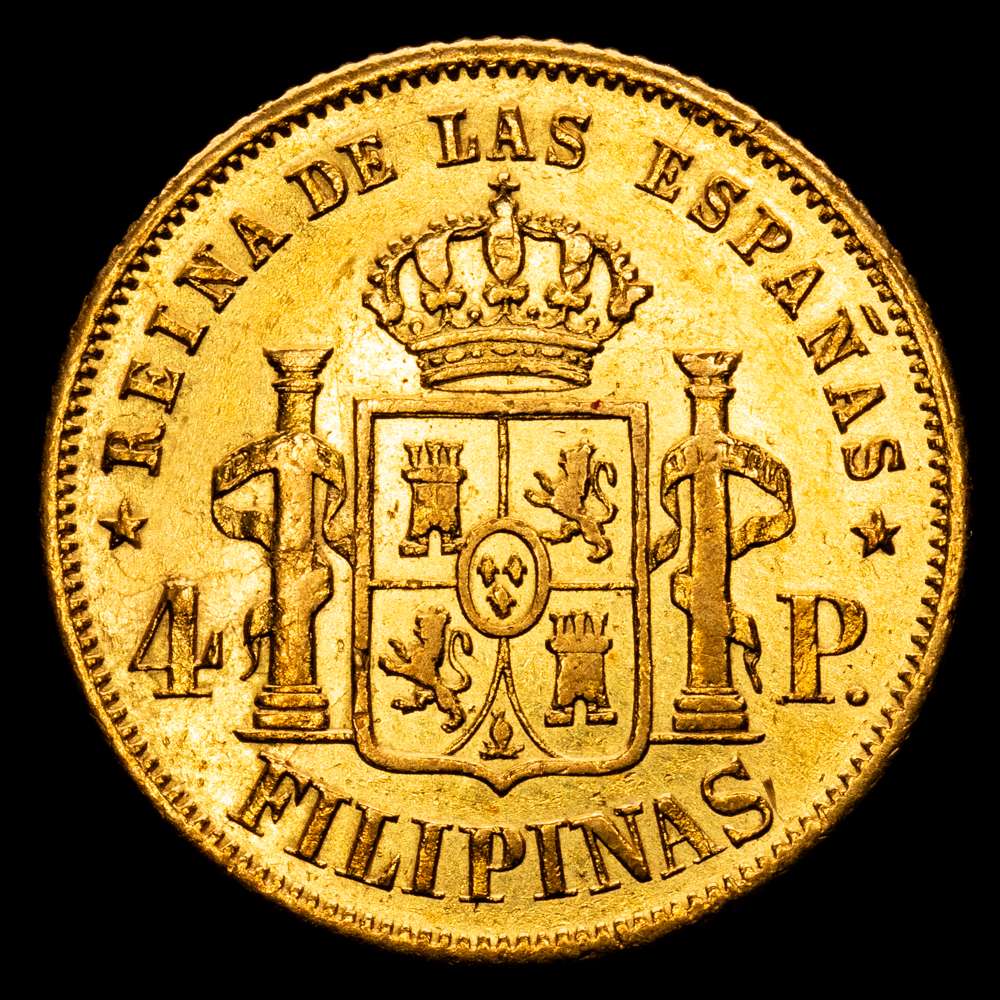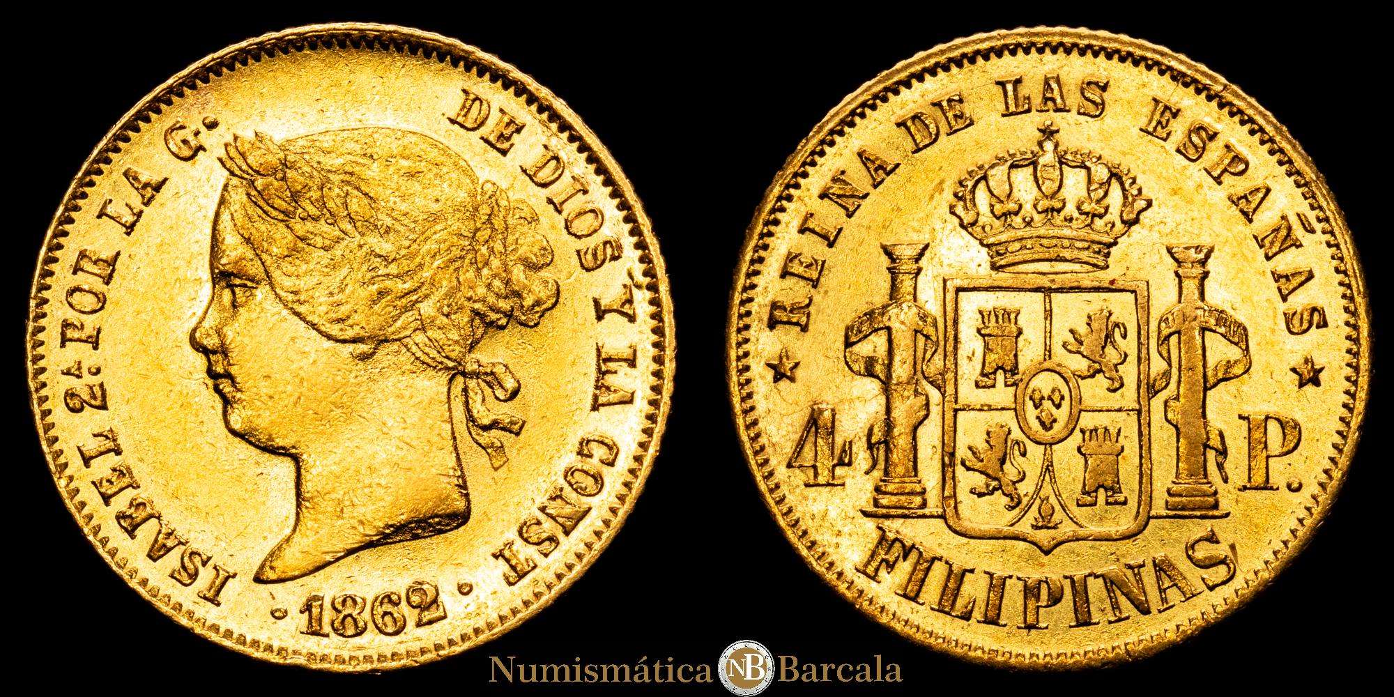 Numismática Barcala > Productos > Isabel II (1833-1868). 4 pesos. 1862. Manila. (Cal-854). Au. 6,75 g. VF+.