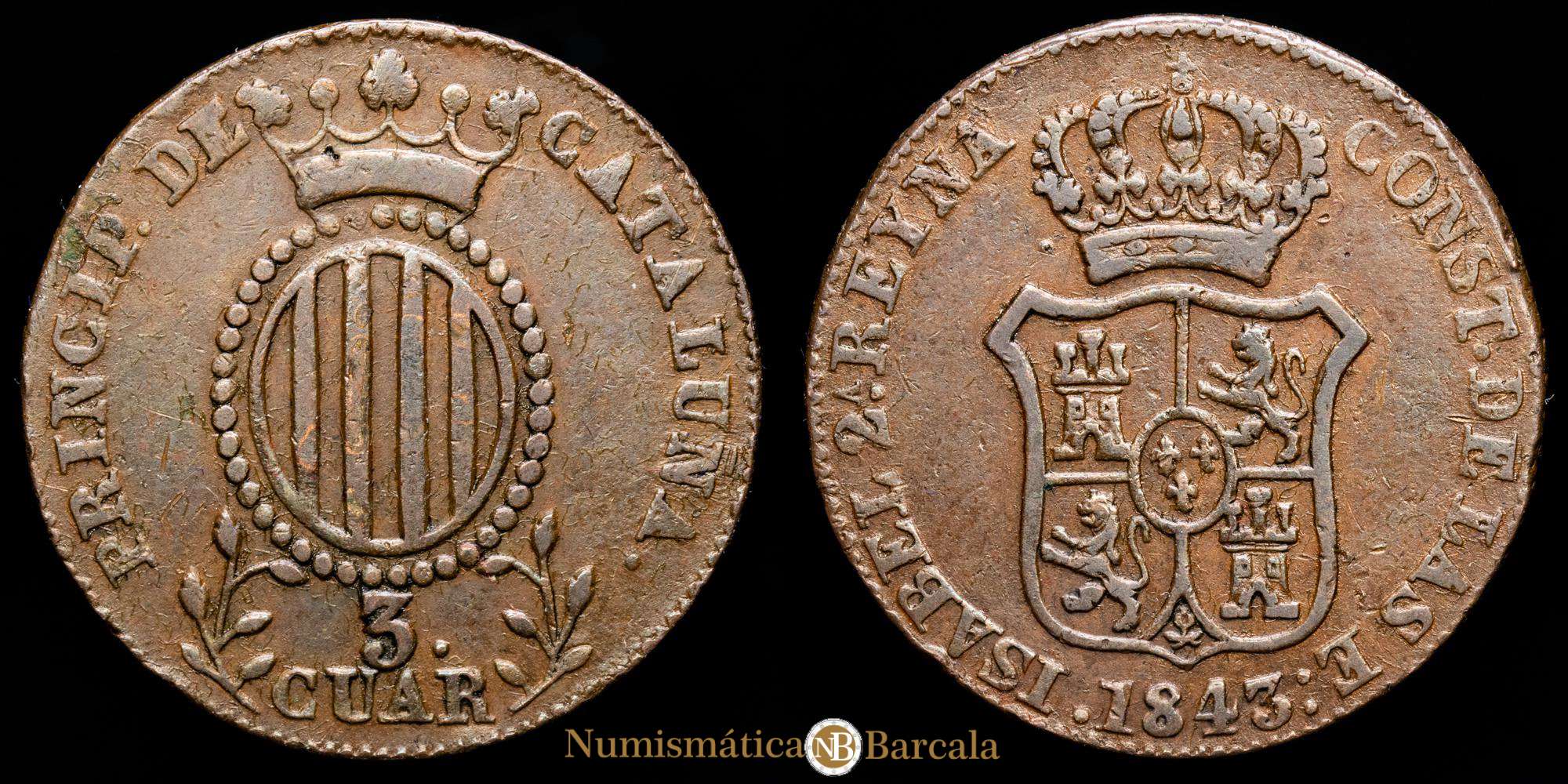 Isabel II. 3 Cuartos. (6,81g.). Barcelona. 1843. CA-10. MBC+.