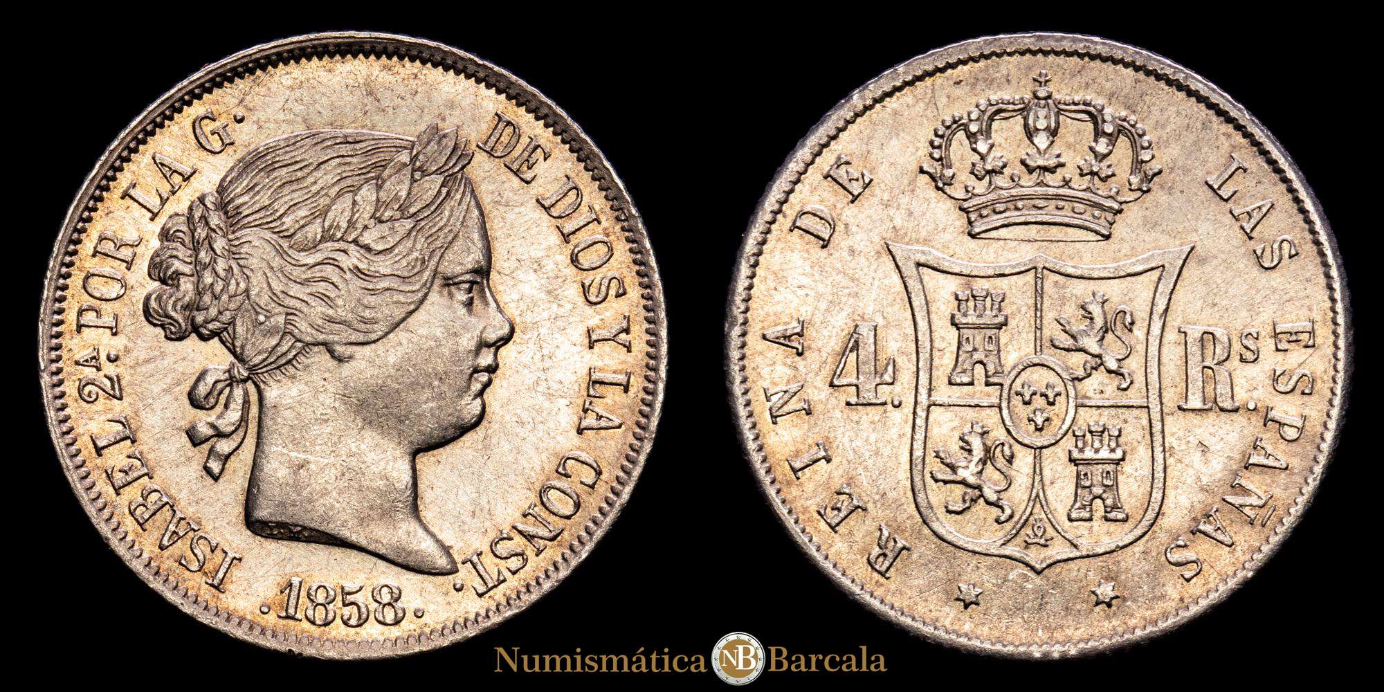 Numismática Barcala > Productos > Isabel II. 4 Reales. (5,22 g.). Madrid. 1858. CAL-464. EBC- .Pátina.