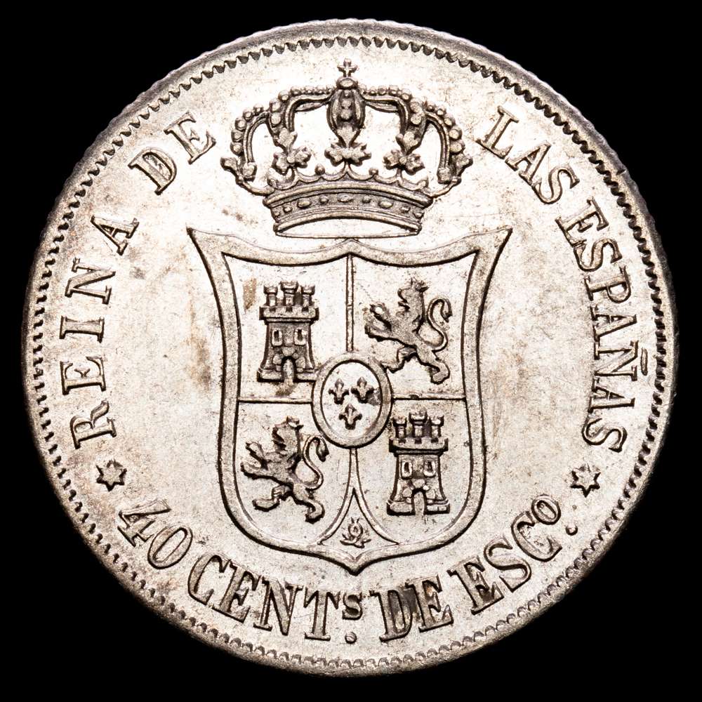 Numismática Barcala > Productos > Isabel II. 40 Céntimos de Escudo. (5,14 g.). Madrid. 1865. AC-500. EBC. Parte del brillo original. Escasa así