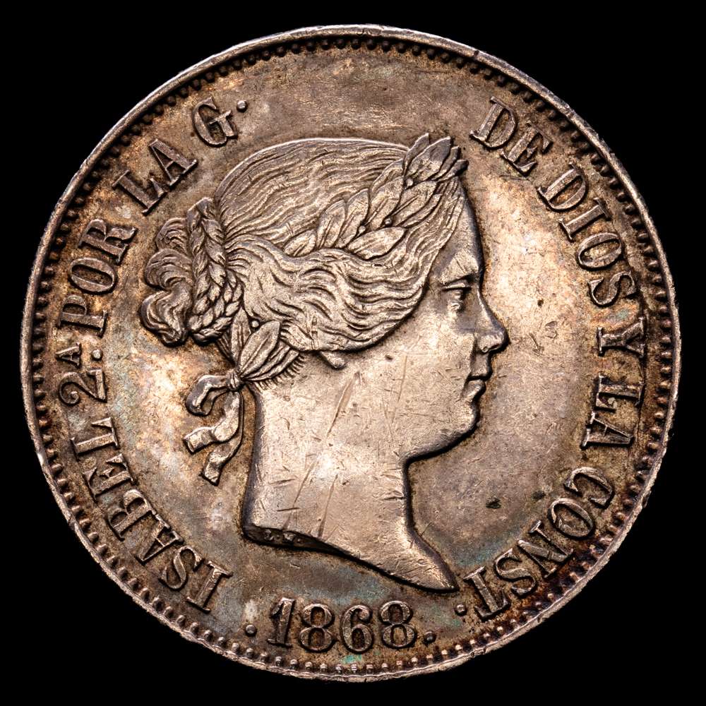 IsabelI (1833-1868). Madrid. 1 escudo. 1868*1868. (AC.567). 12,95 gramos. EBC-. Pátina.