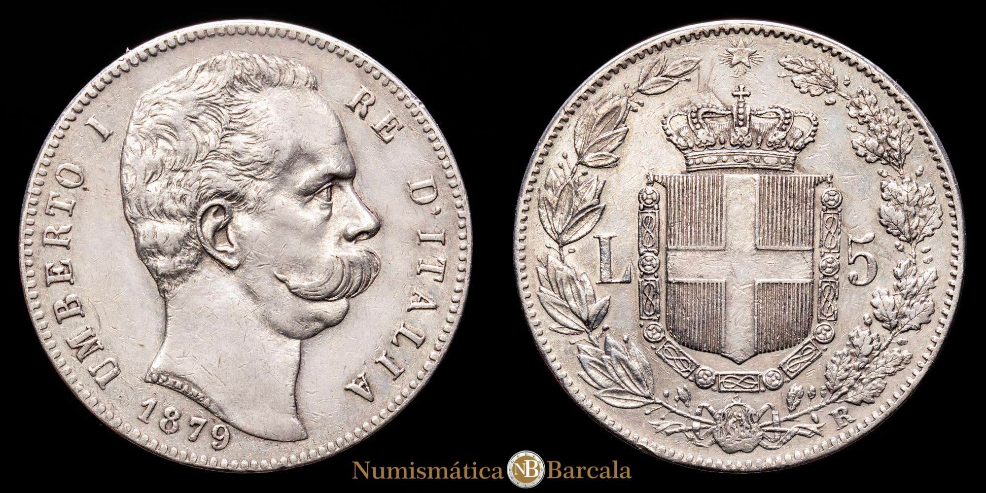 Italia – Umberto I. 5 Liras. (25,01 g.). Roma. 1879. Pogani – 590. MBC+.