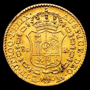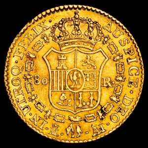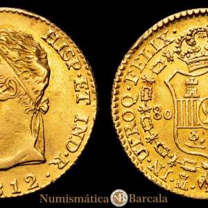 Numismática Barcala > Productos > José Napoleón. 80 reales. 1812. Madrid. AI. 6,76 g. 21,5 mm. Au. VI-41; AC-51. Bello color. MBC+. Rara.