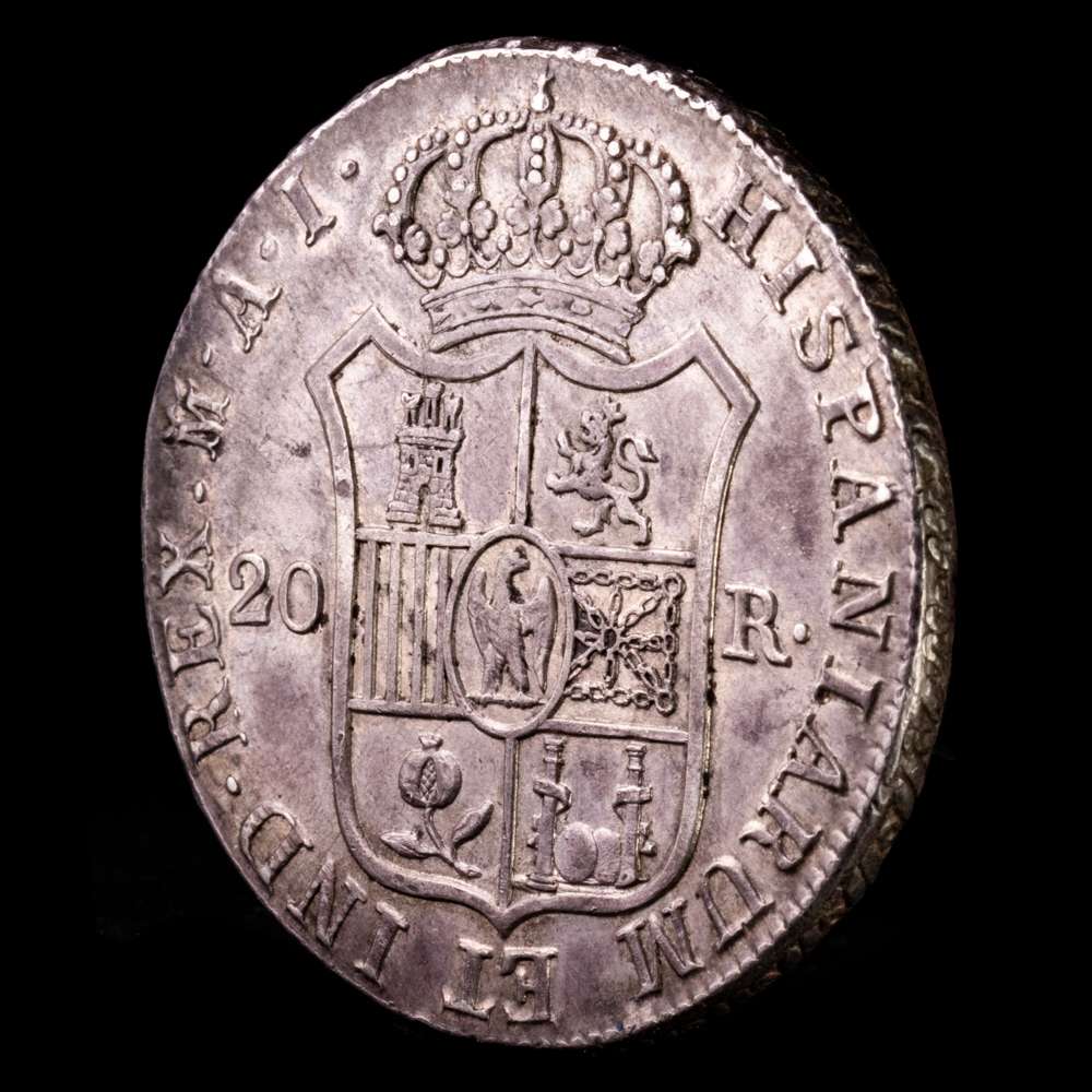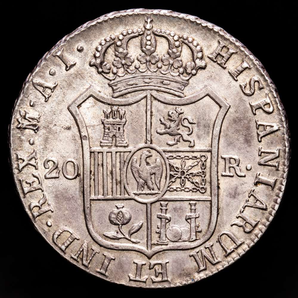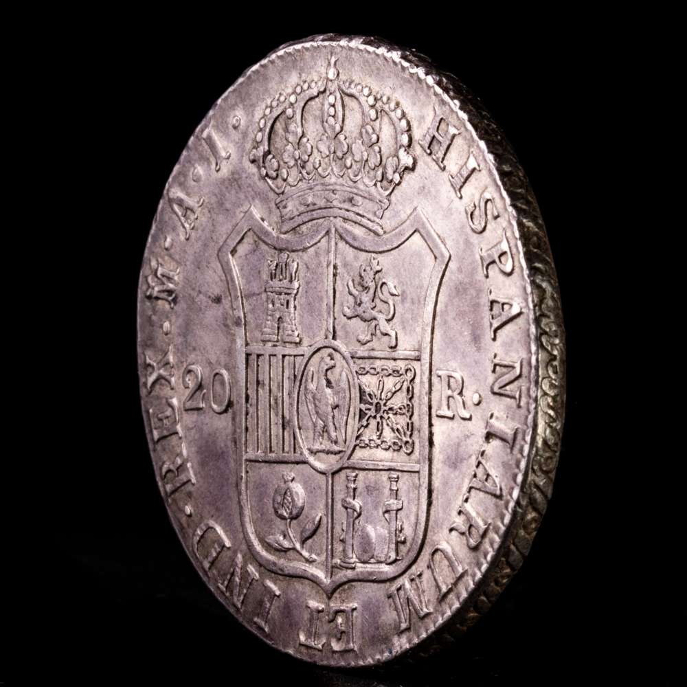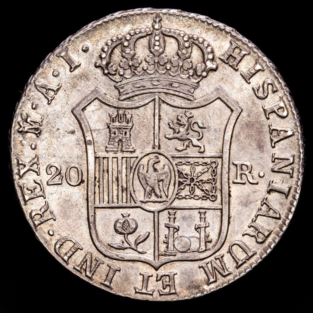 Numismática Barcala > Productos > José Napoleón (1808-1814). 20 reales. 1809. Madrid. AI. (Cal 2019-36). Ag. 27,07 g. Águila grande. Bonita pátina de monetario. EBC+.