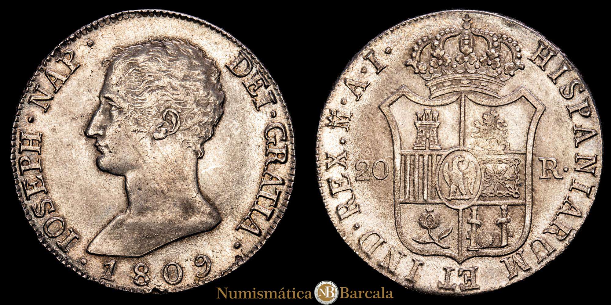 Numismática Barcala > Productos > José Napoleon. 20 Reales. (26,96 g.). Madrid. 1809. A·I. AC-36. EBC-. Ligera pátina y restos de brillo