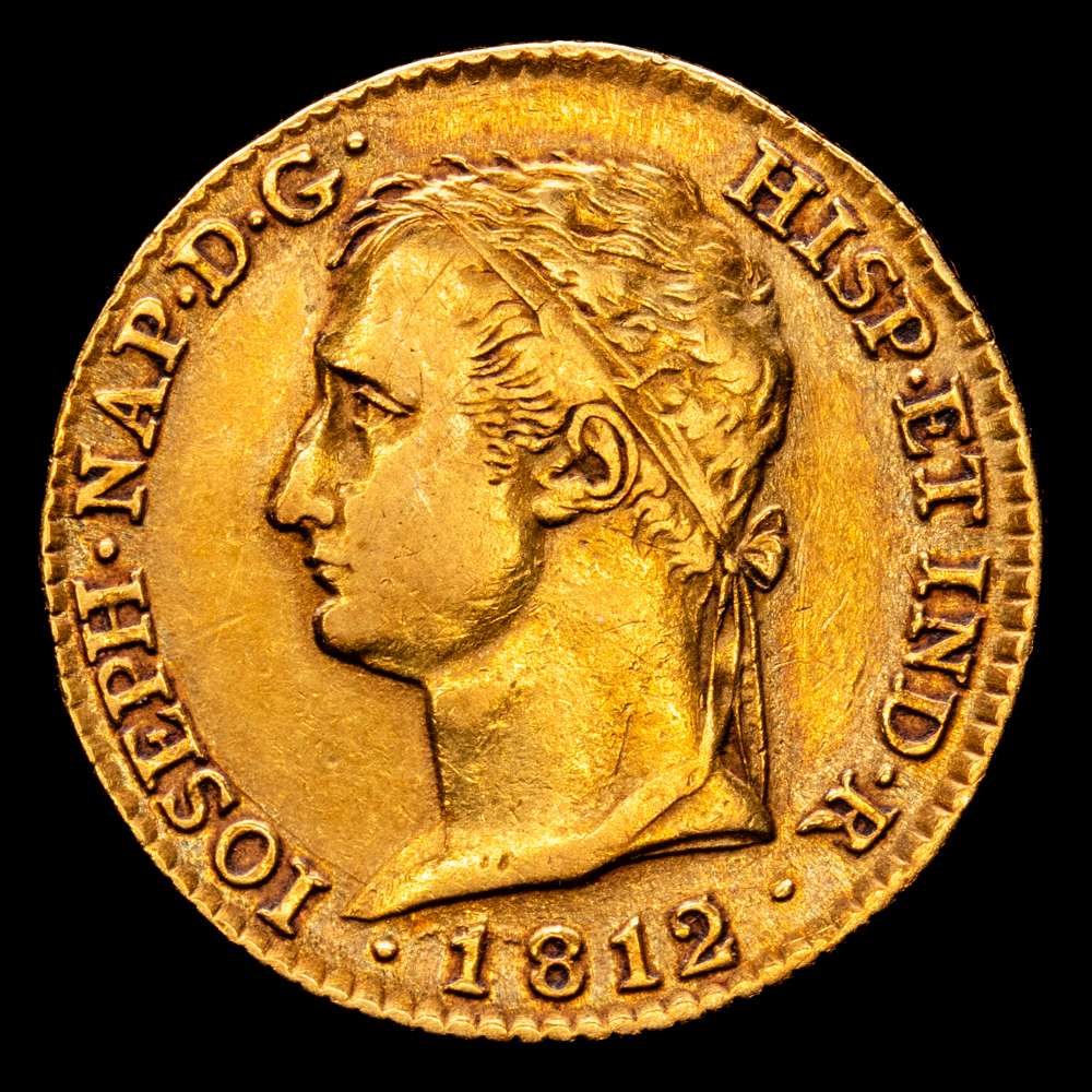 Jose Napoleón. 80 Reales. (6,69 g.). Madrid. 1812/1 . A·I. (AC.50). Busto diademado. Pátina de monetario antiguo.