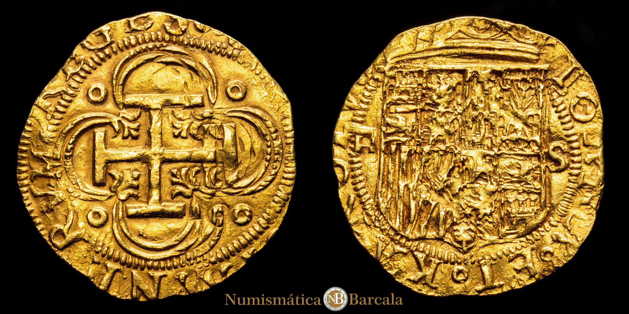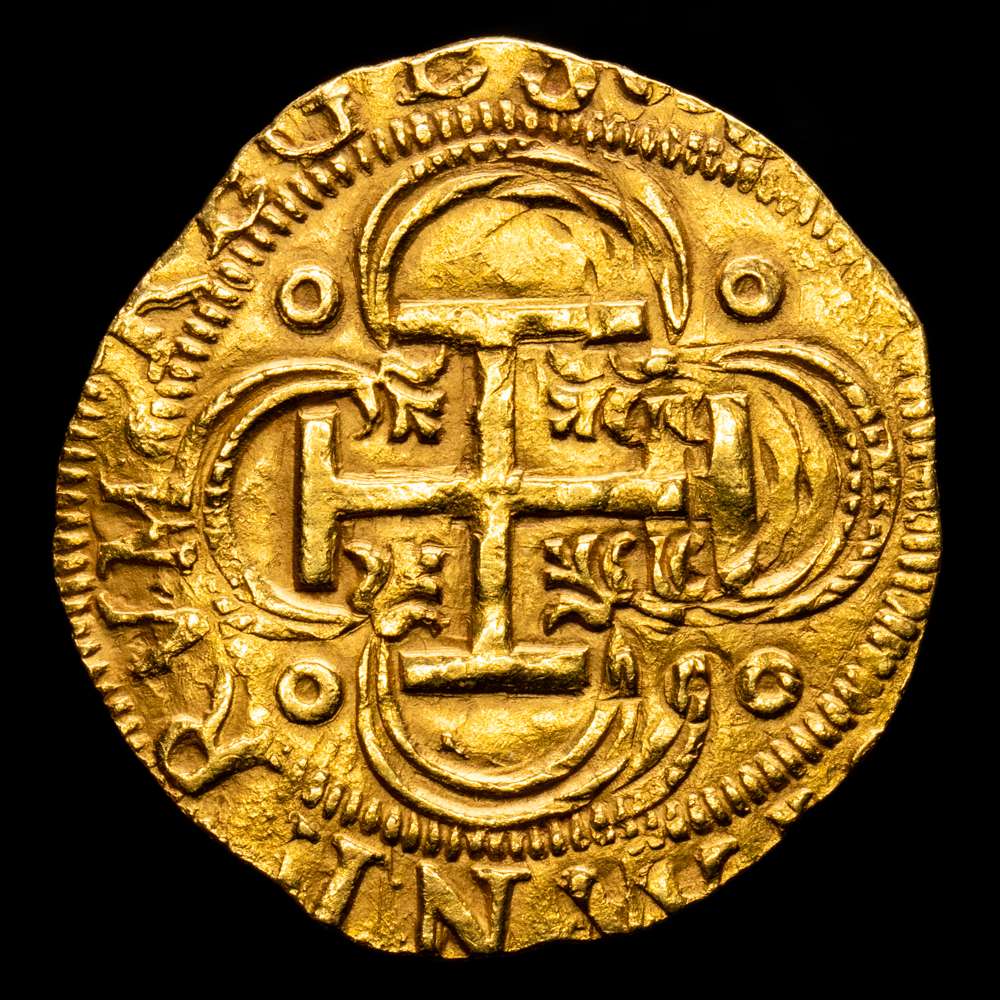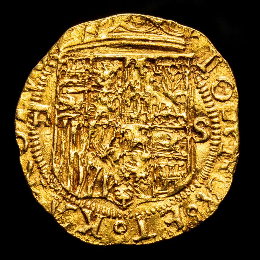 Juana y Carlos. 1 Escudo. (3,37 g.).(1504-1555) Sevilla. Ensayador D”cuadrado”. Aureo y Calico-199. Anv.: IOANA · ET · KAROLVS ·. Rev.: (HIS)PANIARVM · REGES : S(ICILI). (EBC+). Parte del brillo original. Bonito color.