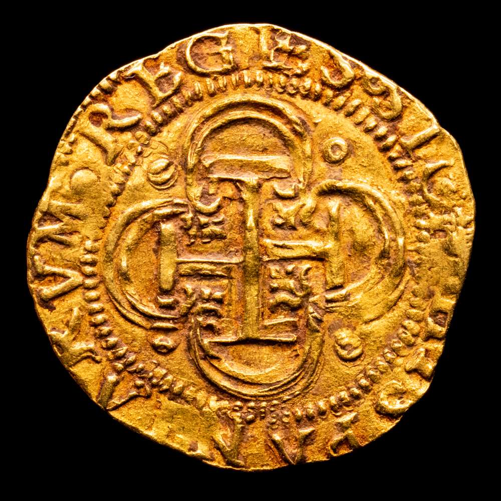 Juana y Carlos (1504-1555). 1 escudo. Sevilla. (Cal-196). (Tauler-22). Anv.: IOANA · ET · KAR·OLVS. Rev.: HISPANIARVM · REGES : SICIL. Au. 3,35 gramos. Escudo entre “cuadrado d” y S. Muy redondo con leyendas totalmente conservadas. Bonito color. XF. Escasa así.