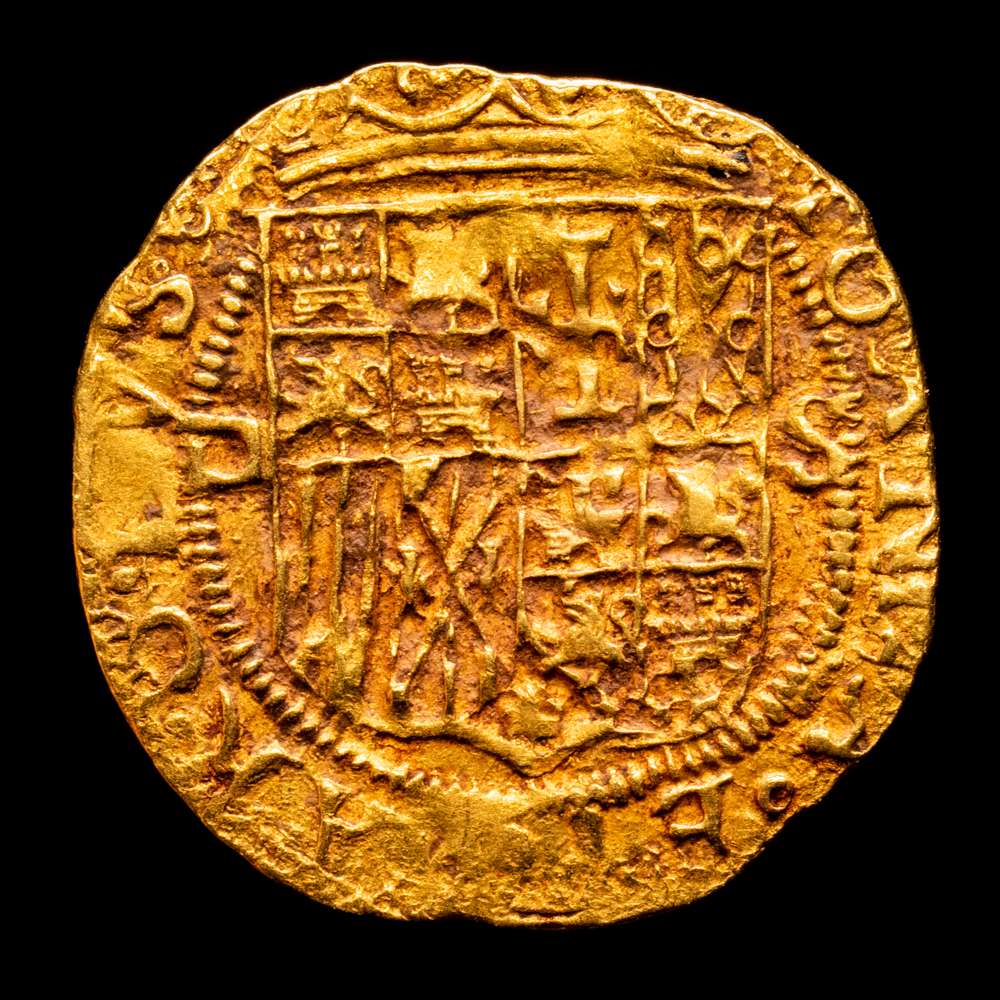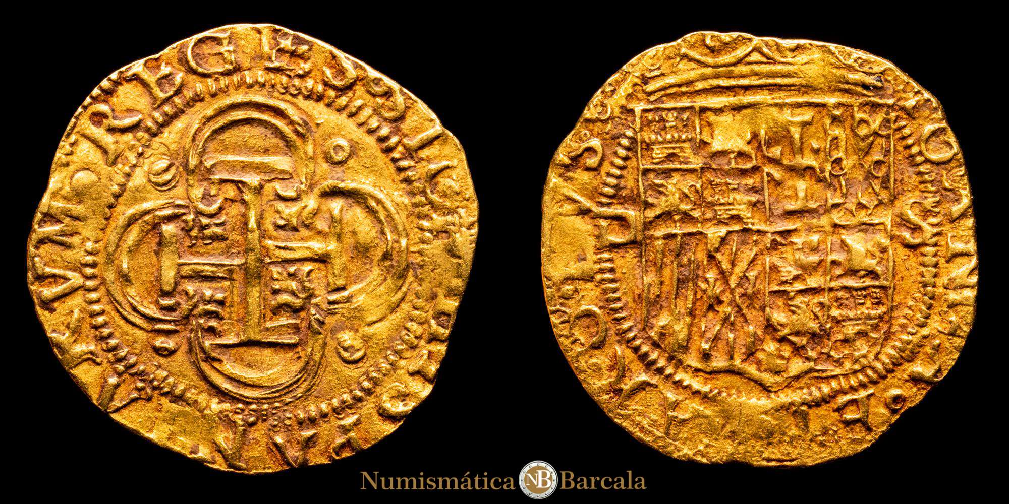 Juana y Carlos (1504-1555). 1 escudo. Sevilla. (Cal-196). (Tauler-22). Anv.: IOANA · ET · KAR·OLVS. Rev.: HISPANIARVM · REGES : SICIL. Au. 3,35 gramos. Escudo entre “cuadrado d” y S. Muy redondo con leyendas totalmente conservadas. Bonito color. XF. Escasa así.