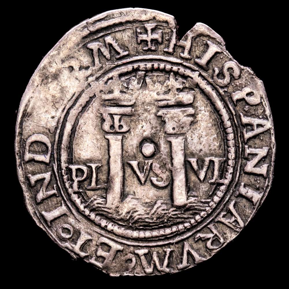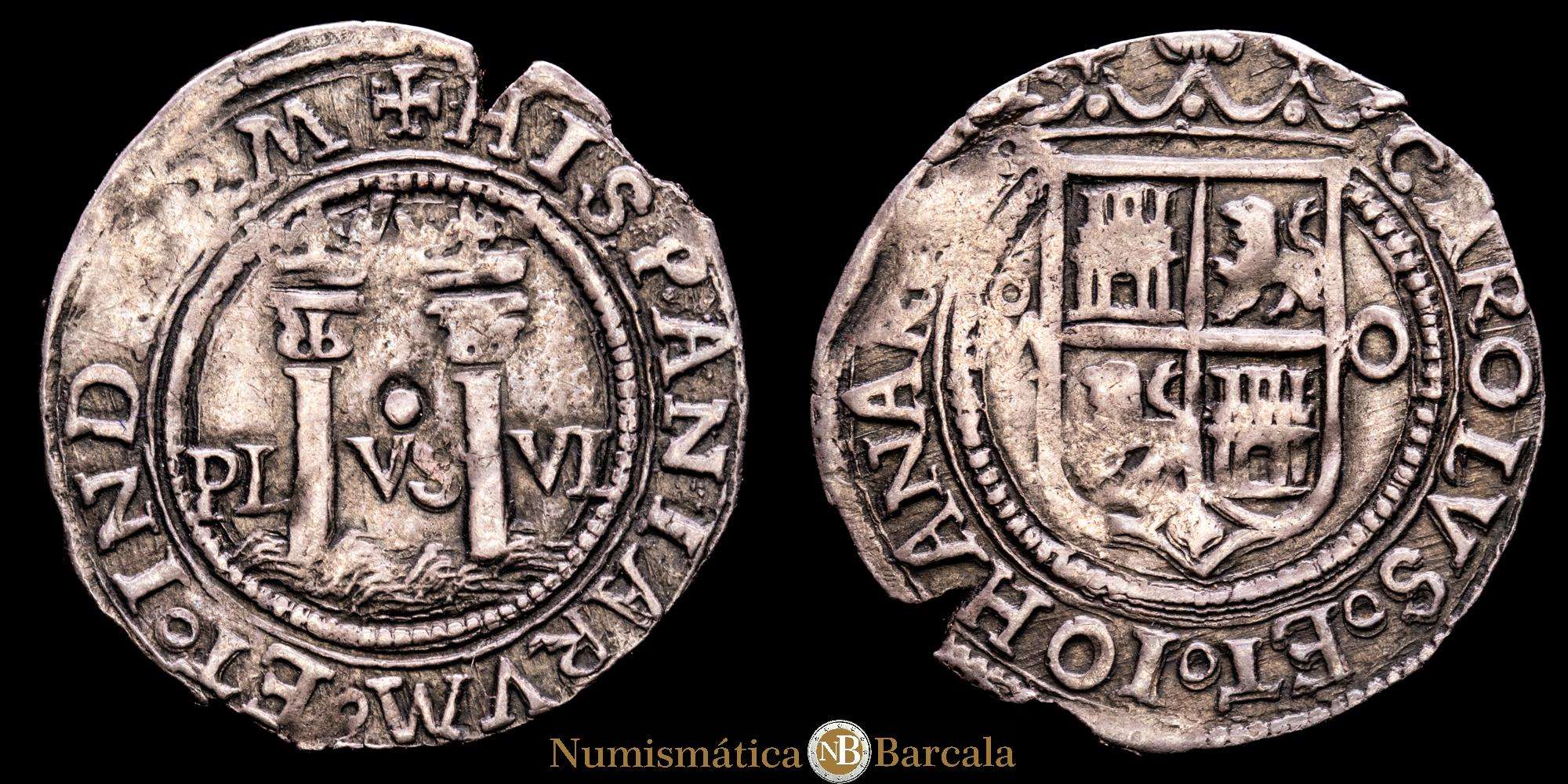 Juana y Carlos (1504-1555). 1 real. ND (1554-1556). México. O. (Cal-74). Ag. 3,32 g. Buena acuñación con las leyendas casi completas. Pátina oscura. XF.