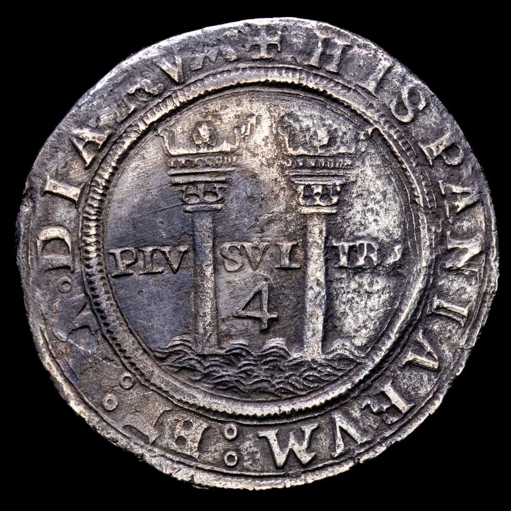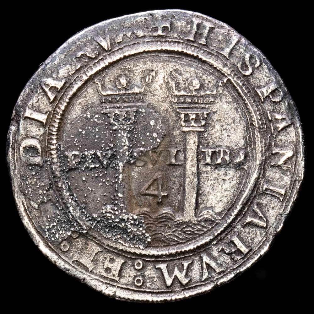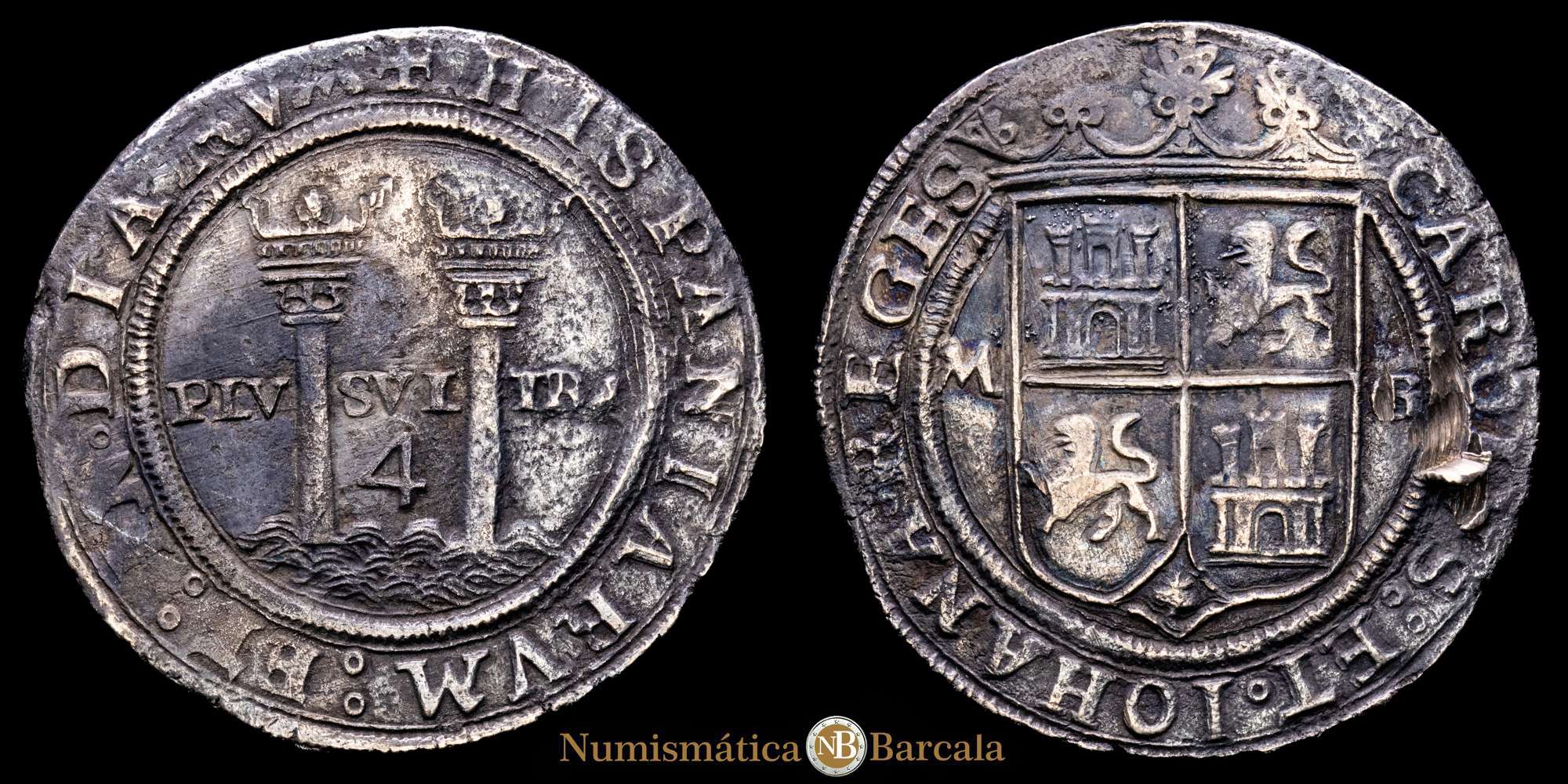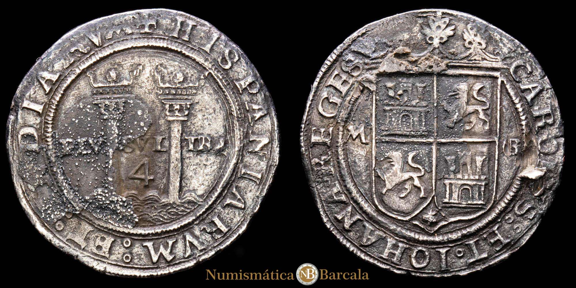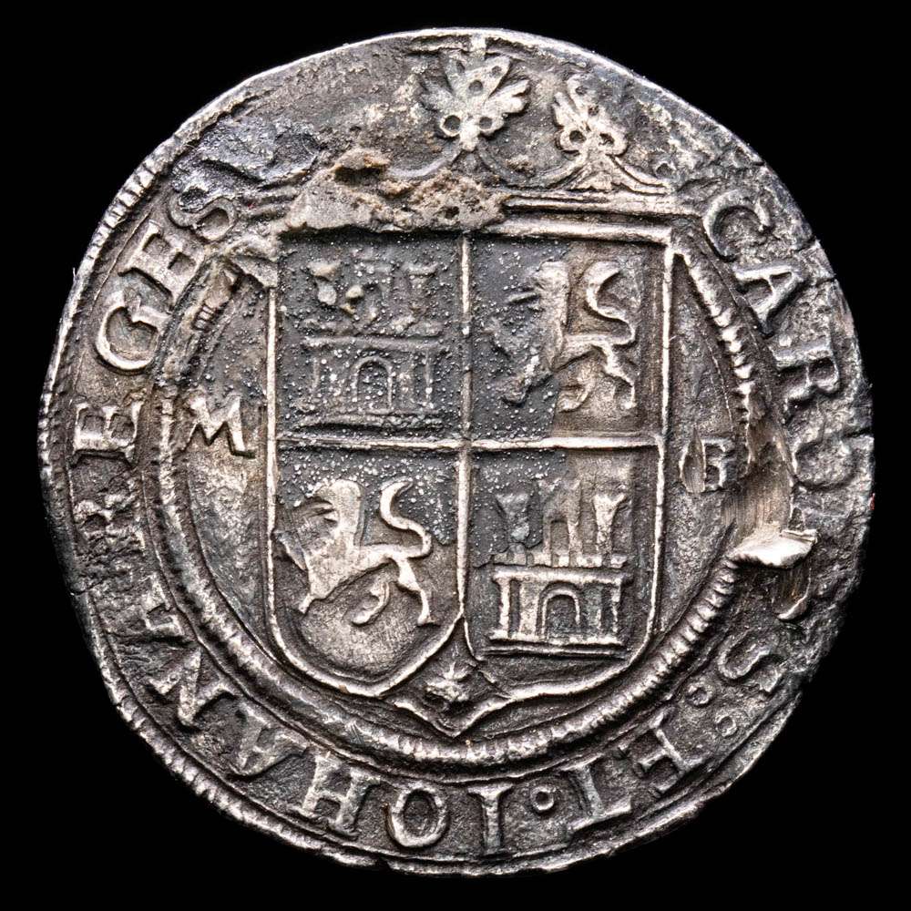 Juana y Carlos . 4 Reales. (12,85 g.). México. (1504-1555). Ensayador M·G. Aureo y Calicó – 125. MBC+. Concreciónes limpiadas en anverso y reverso.
