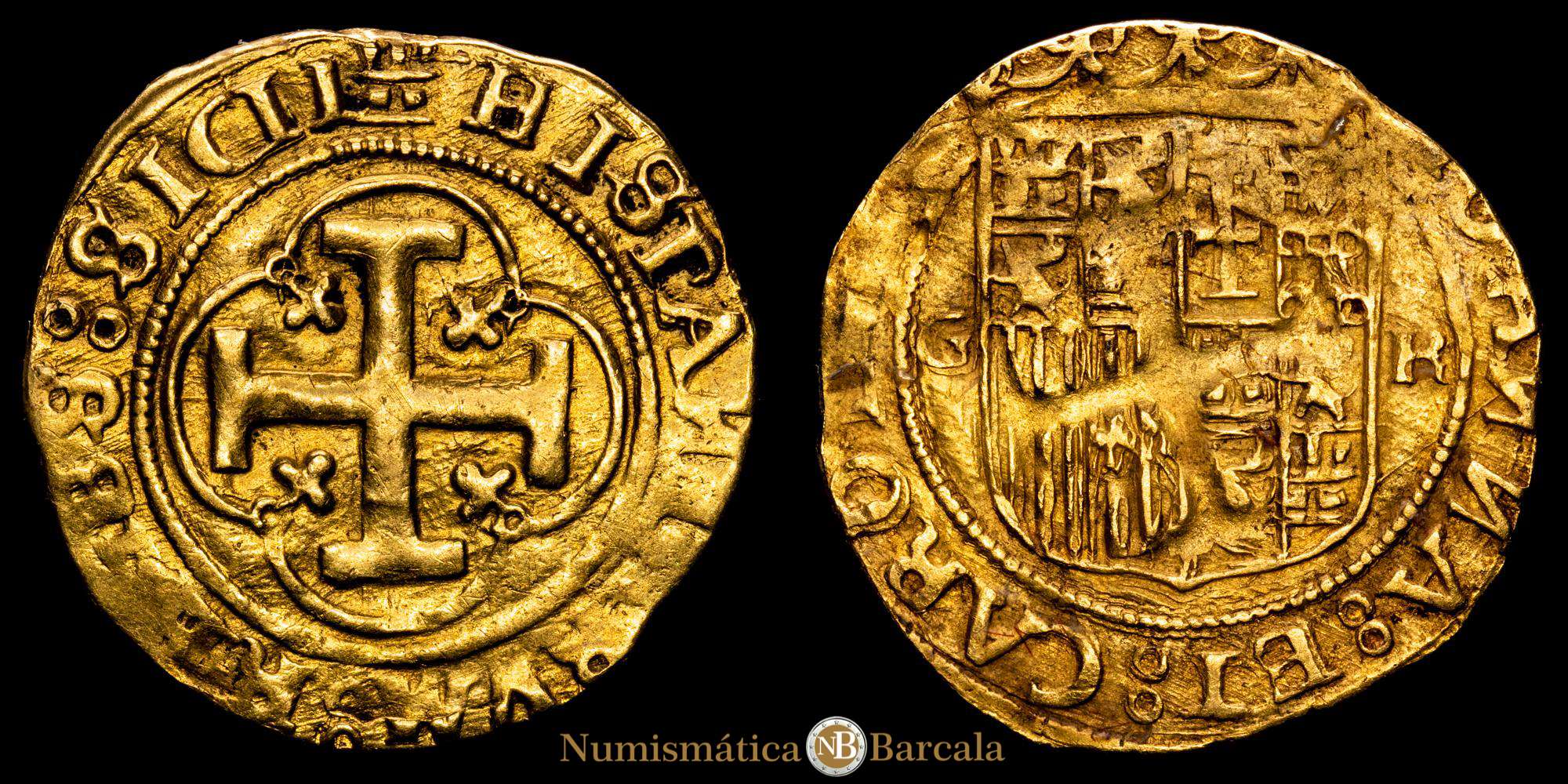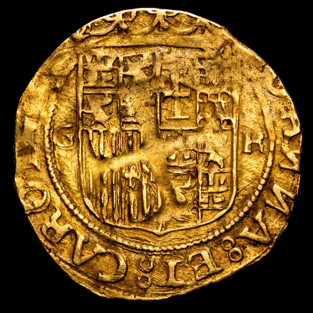 Juana y Carlos. Granada. Escudo. (3,24g) . 1535 y siguientes. R. G y R flanqueando el escudo. Las N de las leyendas giradas. R (abierta). (Cal-42 variante). (Tau-9a variante). MBC . RARA.