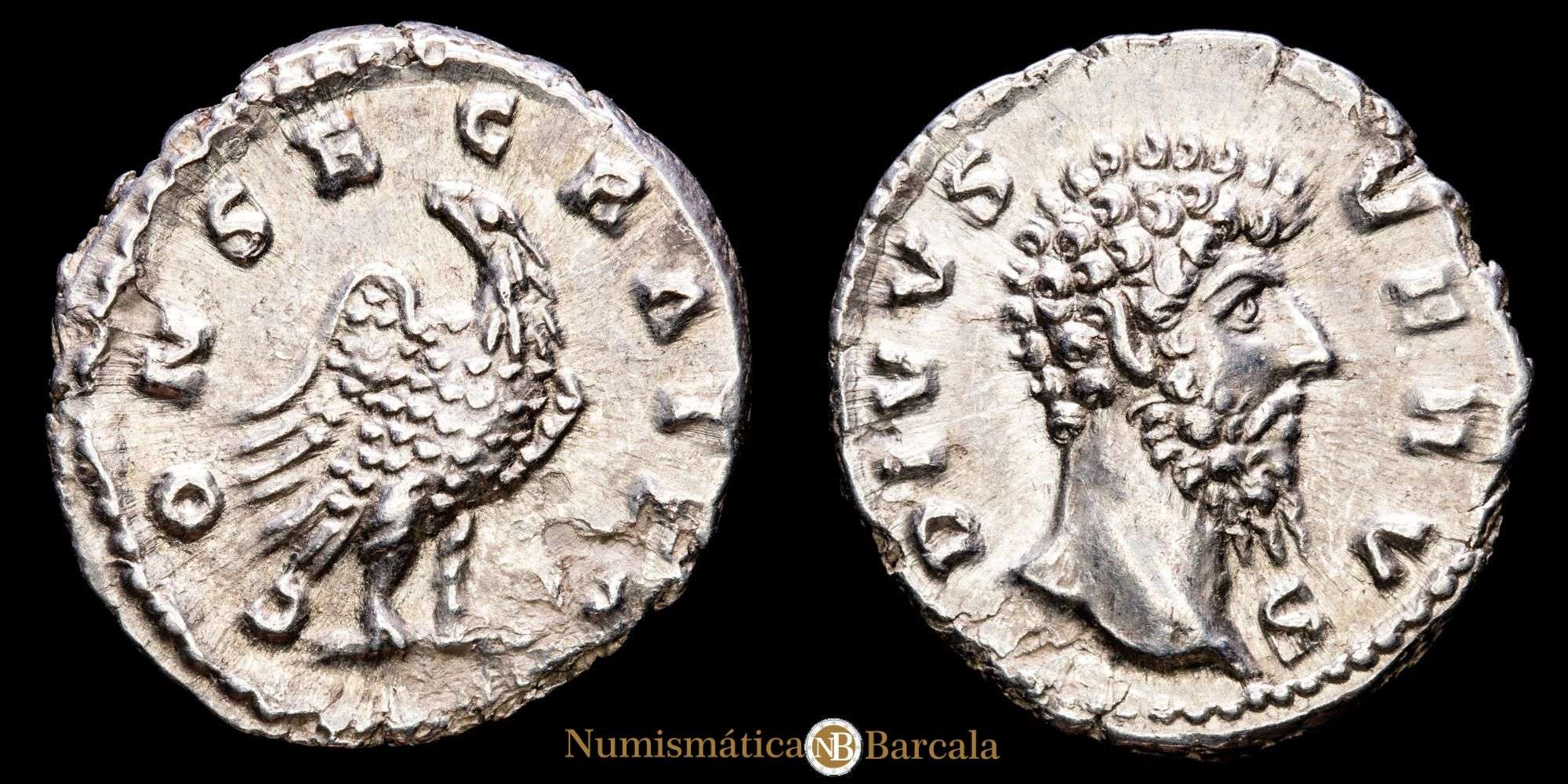 Numismática Barcala > Productos > Lucio Vero. Denario. (3,11g.). Roma. 169 d.C. RIC-596a. XF. R: CONSECRATIO Águila