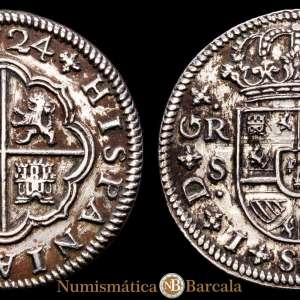 LUIS I. 1724 Sevilla. 2 reales. (CA 29) 5,52 gr Ar. LUDOUICUS. (Rayitas). Rara. MBC+