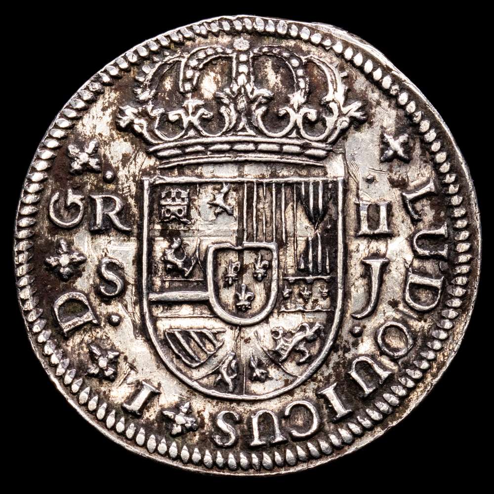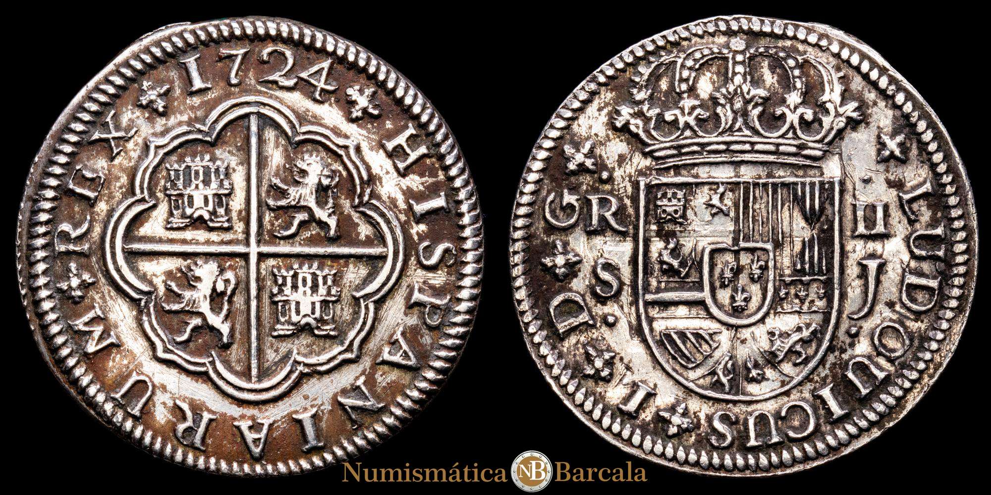 Numismática Barcala > Productos > LUIS I. 1724 Sevilla. 2 reales. (CA 29) 5,52 gr Ar. LUDOUICUS. Rara. MBC+