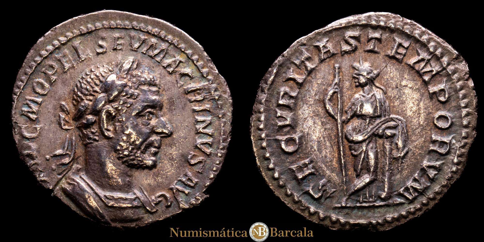 Numismática Barcala > Productos > Macrino. Denario. 217 d.C. Roma. (Spink-7365). (Ric-91). Ag. 3,00 g. Escasa. XF.