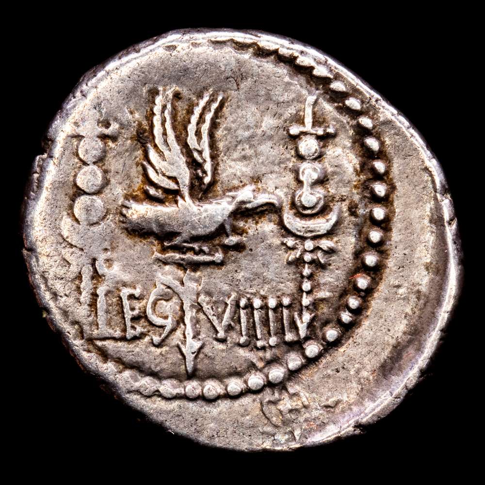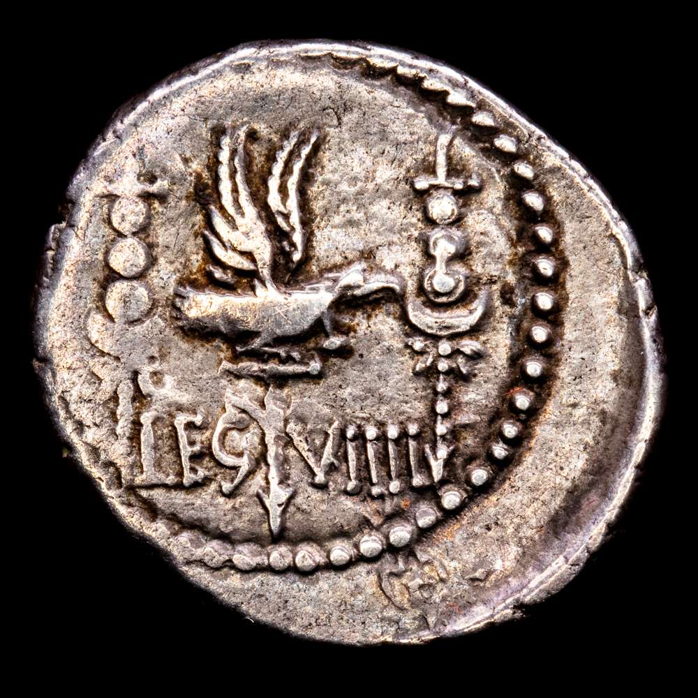 Numismática Barcala > Productos > Marco Antonio. Denario. 32-31 a.C. Ceca volante. (Ffc-41). (Craw-544/22). (Cal-188). Ag. 3,81 g. VF+.