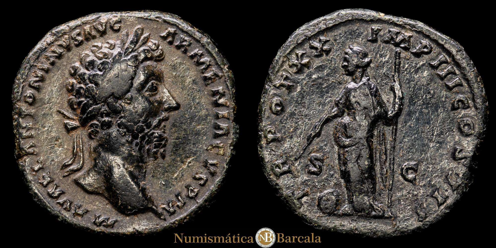 Sestercio de bronce (22,07 g, 32 mm). Roma, 165-166 d. C.