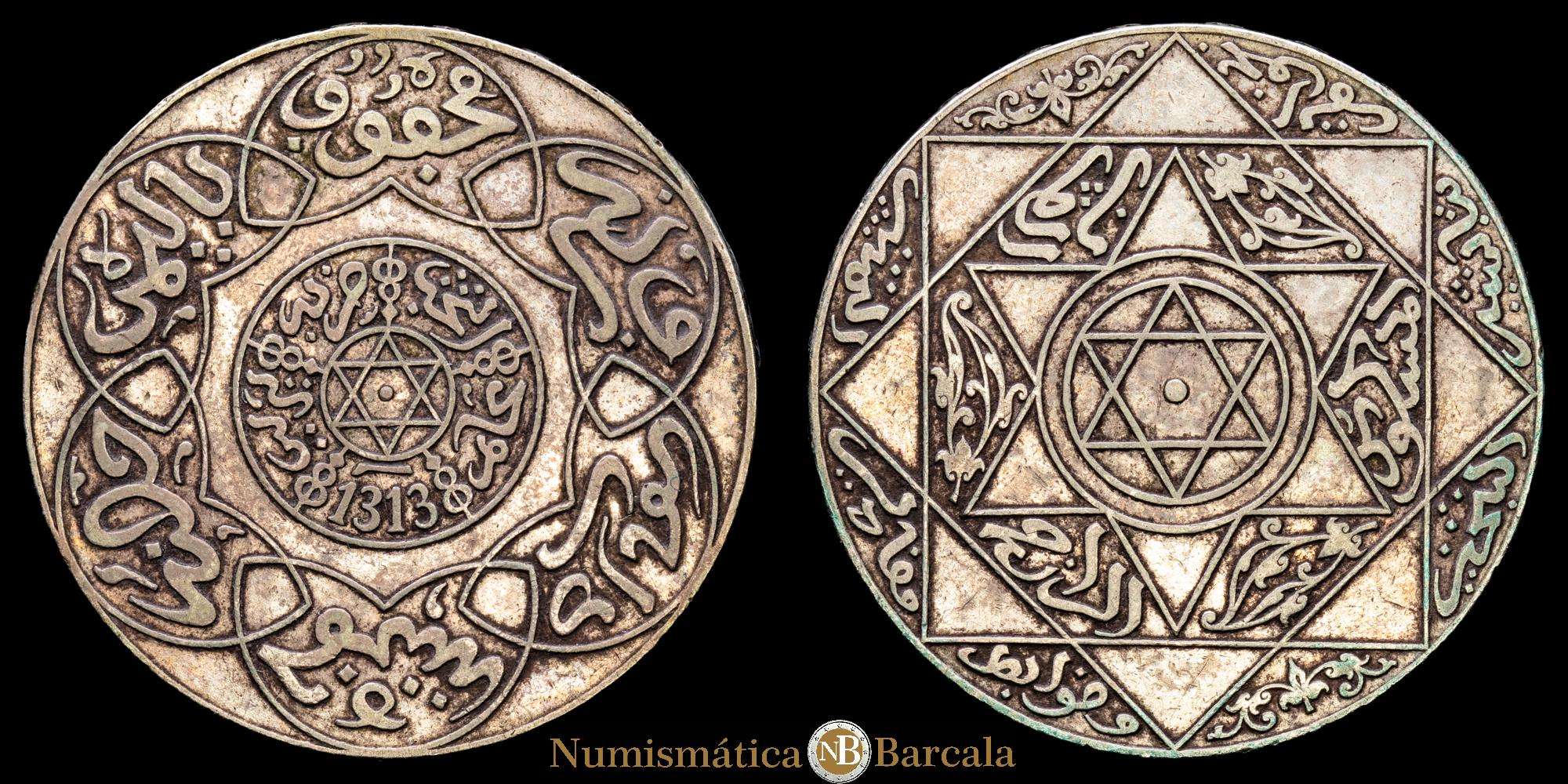Numismática Barcala > Productos > Marruecos. 1/2 rial, 1895, Hegira 1313. Berlin. Abd al-Aziz. KM12.1. 14,51 g. plata 835. XF/VF.